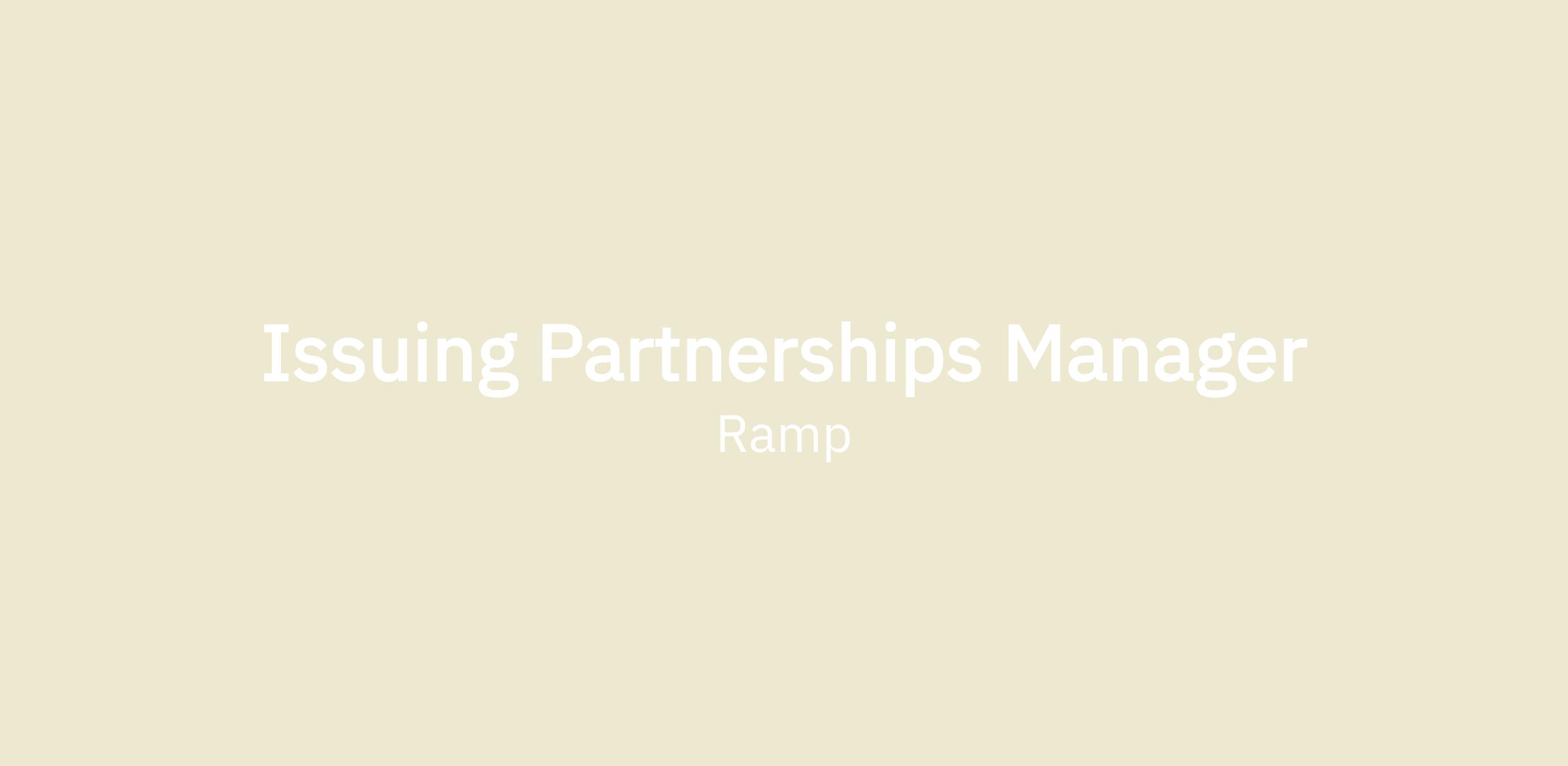 We are looking for a Partnerships Manager to join our Issuing Partnerships team to drive our Card Issuing product strategy and execution with partners. In this role, you will help Ramp expand our card product offerings, develop new features leveraging our partners’ APIs, and deliver best-in-class experiences for our customers.