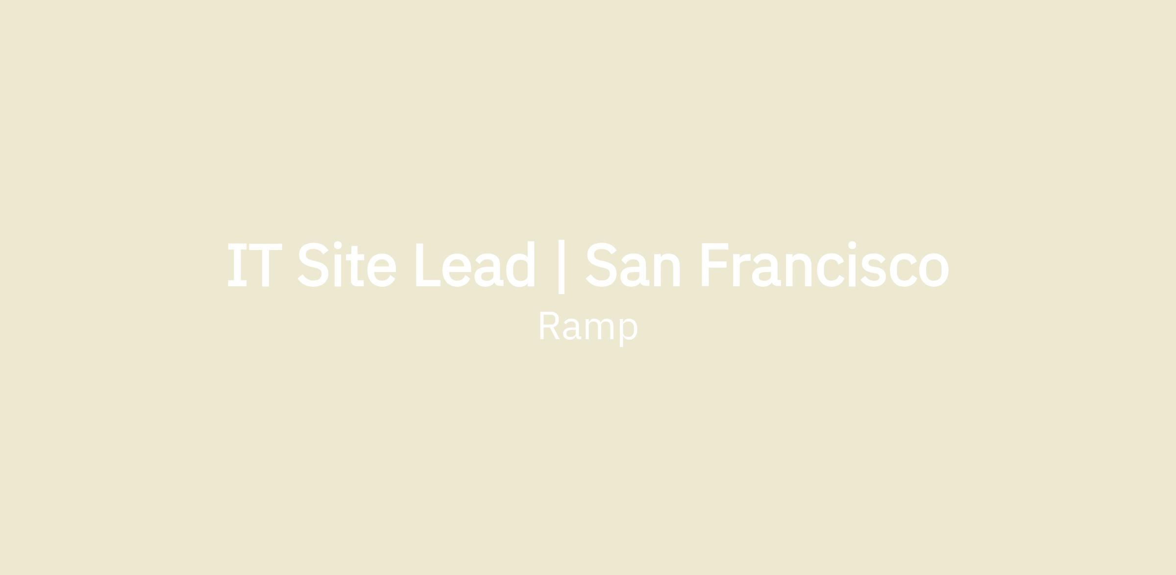 Ramp is on a mission to become the most productive company in the world, and our IT team is foundational to that mission. We’re looking for an IT Site Lead to take full ownership of IT operations in our San Francisco office. In this role, you’ll be the go-to partner for employees onsite, delivering seamless support while proactively identifying opportunities to automate and improve workflows. You’ll have access to powerful tools, including AI-driven solutions, and will be empowered to build systems that reduce friction, scale effortlessly, and let your teammates focus on meaningful, strategic work. This is a role for someone who’s resourceful, self-directed, and excited to tackle problems hands-on.