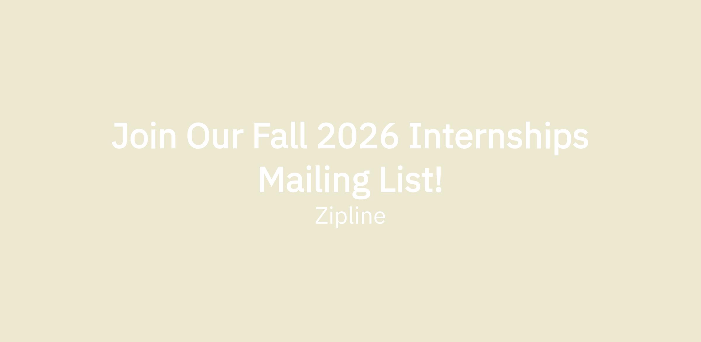 We can't thank you enough for your excitement and interest in Zipline! As you may have heard, this is undoubtedly the most exciting time to join Zipline. By completing the form below, you will be signed-up for our Fall 2026 internships mailing list. As soon as our Fall intern roles go live on our careers page around mid October, you will receive an email notification.