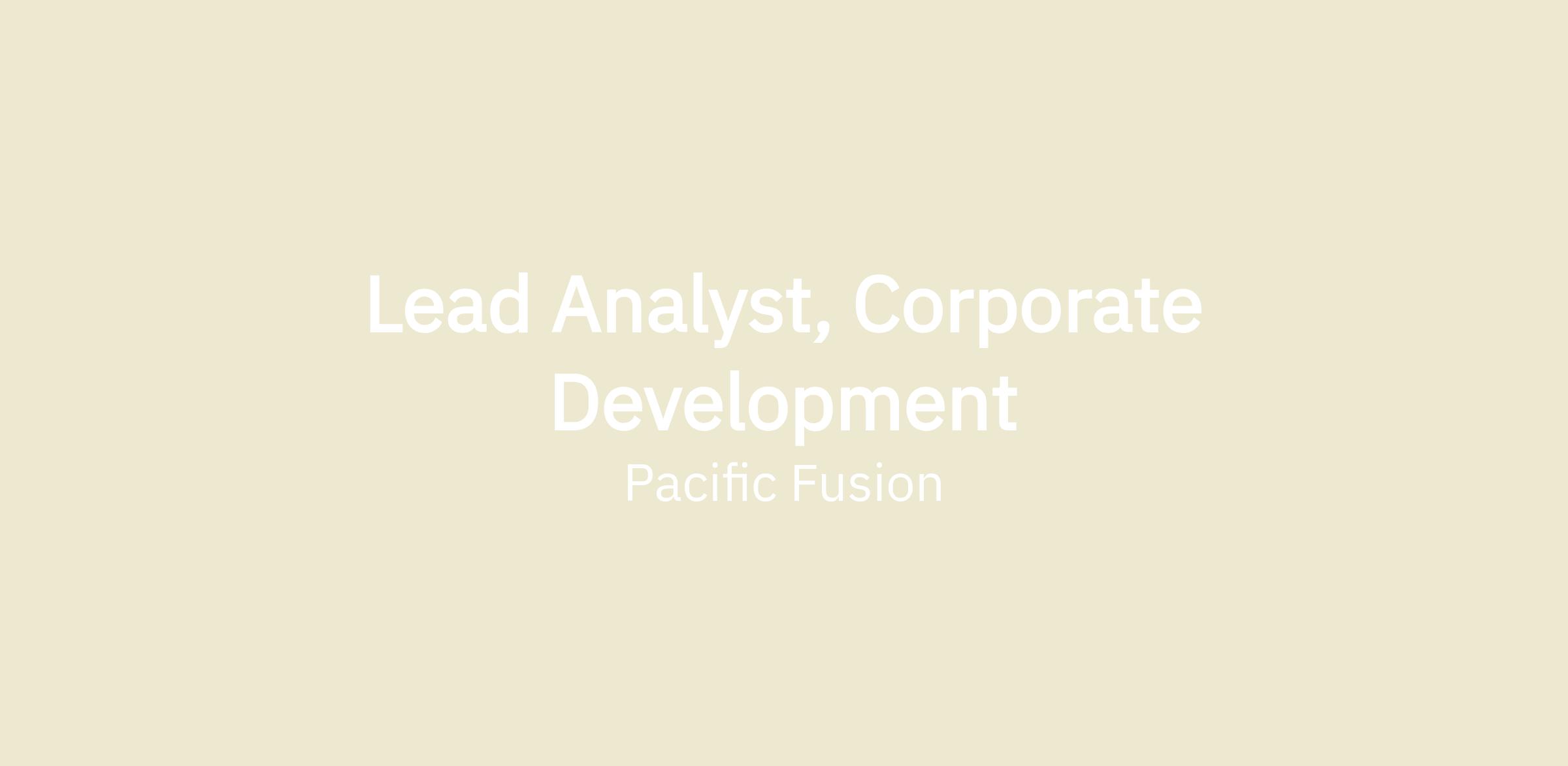 As Lead Analyst, Corporate Development, you will be a key driver of Pacific Fusion’s capital strategy and bankable foundation. This role sits at the intersection of investor relations, project finance, strategic analysis, and M&A. Your work will directly influence how we raise capital and build the financial architecture for a new category of energy infrastructure.