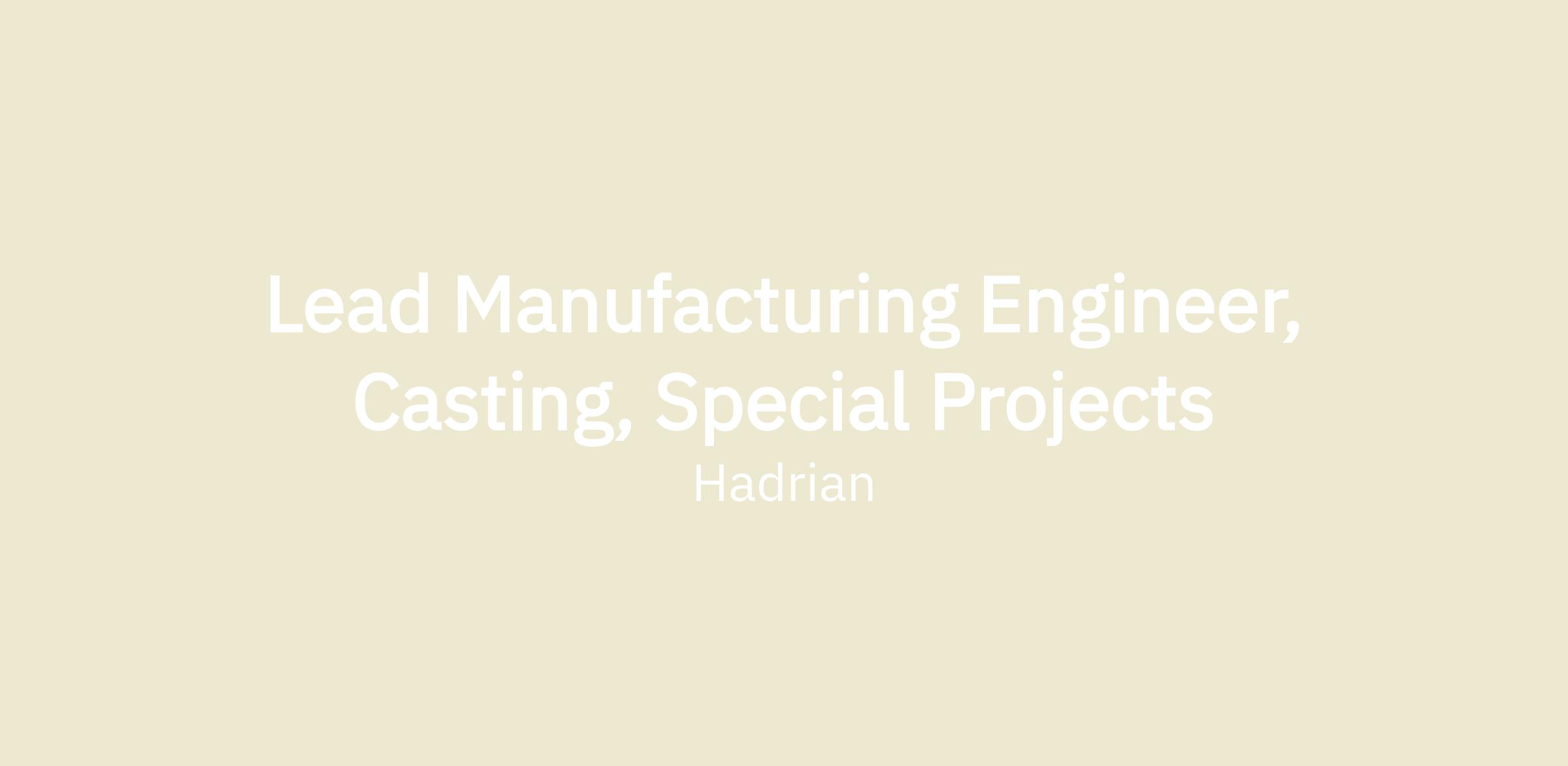 You’ll recruit and lead 1-2 casting MEs to assist, and work with Hadrian’s Automation and Factories Leadership teams to design and ship comprehensive casting production and inspection lines.