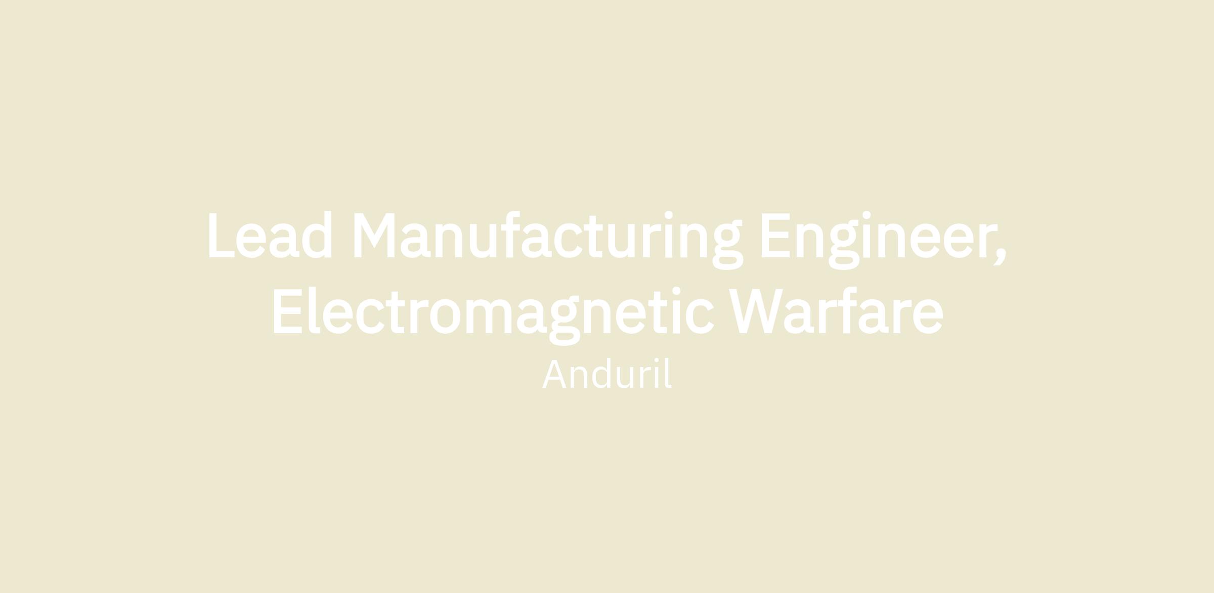 Anduril’s Manufacturing team is seeking a Lead Manufacturing Engineer to join our team. The EW Manufacturing Team is responsible for rapidly iterating and building cutting-edge defense hardware for Electromagnetic Warfare. This responsibility includes everything in the manufacturing value-chain, including, but not limited to, Design for Manufacturability work, tool design & selection, process creation & optimization, vendor sourcing & interaction, quality planning, and work documentation associated with the hardware that the Manufacturing Engineer owns.