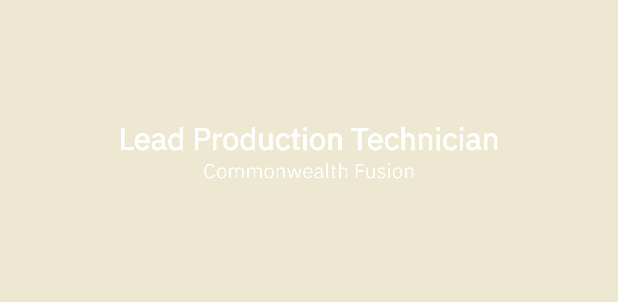 The Lead Production Technician at Commonwealth Fusion Systems is responsible for leading a fast-paced and agile team building the world’s strongest high temperature superconducting magnets and assemblies for integration into CFS fusion devices. The role is responsible for continuously improving production tasks, maintaining schedules with resourcing, and assuring quality requirements are met per documentation. The technician team is a hands-on build team working with mechanical, electrical, magnetic, cryogenic, pressure, vacuum, and pneumatic systems.