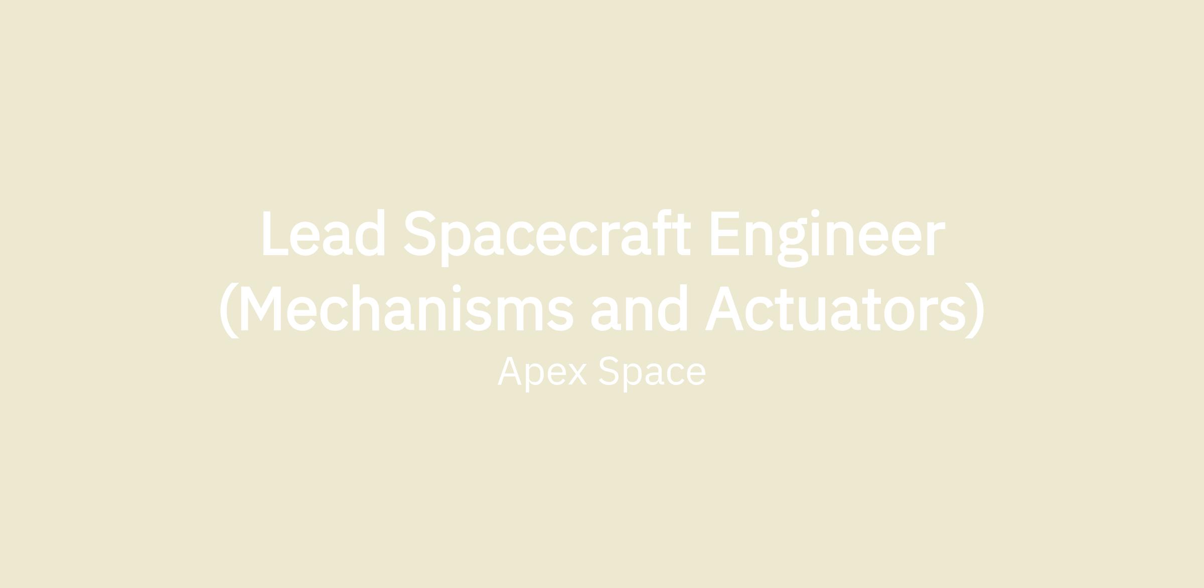 Apex is looking for a Lead Mechanisms and Actuators Engineer to support our current and next generation satellites. This person will own the design, development, and delivery of flight-critical spacecraft mechanisms from concept through on orbit operation. This role will drive architecture, analysis, hardware execution, and cross functional integration for mechanisms including deployables, actuators, and precision moving assemblies.