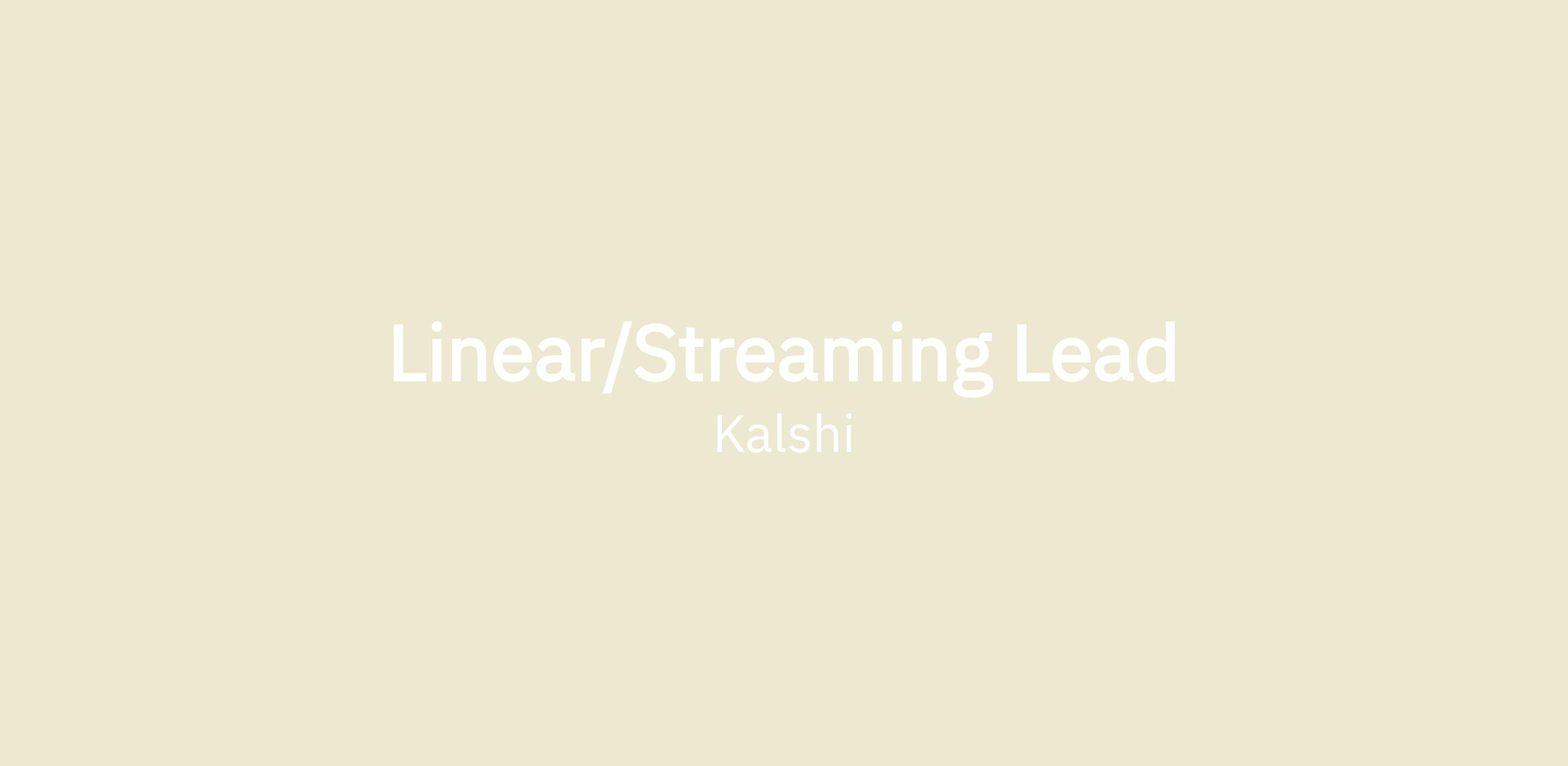 Kalshi is seeking a strategic and data-driven TV Lead to own our national and streaming television strategy end-to-end. This individual will plan, buy, and optimize campaigns across linear and connected TV, balancing creative storytelling with performance rigor. They will negotiate directly with networks and platforms, manage agency and vendor relationships, and use data to continually refine spend efficiency and impact. The ideal candidate combines media expertise with an entrepreneurial mindset, helping position Kalshi as a category-defining brand through smart, measurable TV investment.
