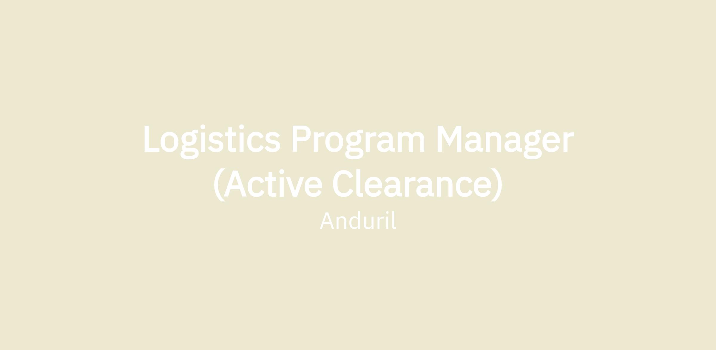 We are seeking an Logistics Program Manager to oversee all developmental logistics tasks, establish technologies using standard principles, theories, concepts, and techniques to provide solutions to a variety of technical problems. You must be able to work independently and will have sole responsibility to deliver Logistics CDRLs. This will require a breadth of understanding both commercial and military logistics, the ability to work across teams seamlessly, and a deep appreciation for details. For this position, we are searching for an individual who can bring experience working on government programs to Anduril and help us continue to scale our capabilities in government and DoD logistics.