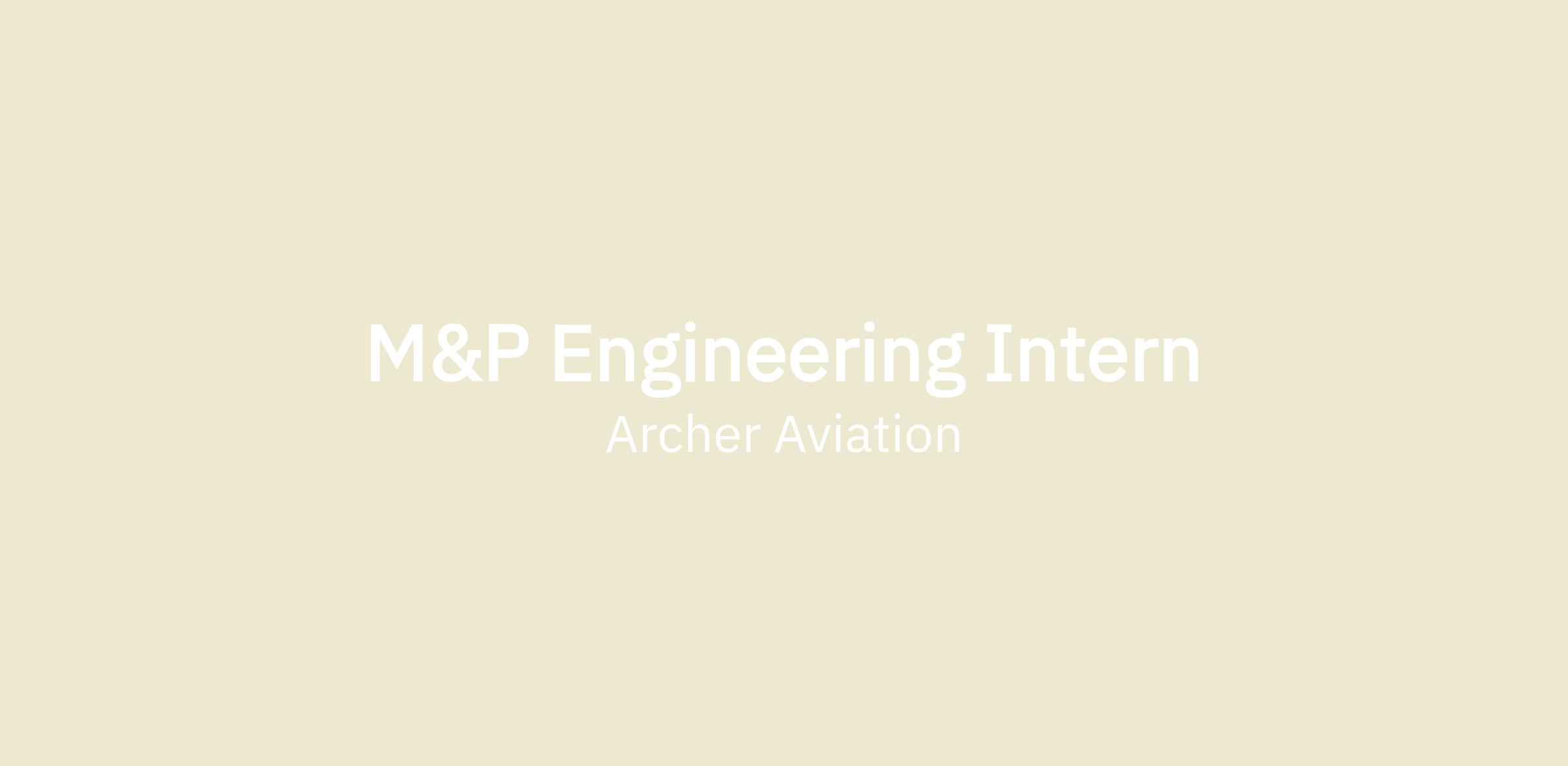 Archer is seeking a motivated and detail-oriented intern to join Archer. This internship provides a hands-on opportunity to gain practical experience within the M&P Engineering team. This role involves supporting our internal and external testing programs, including executing various material qualifications, and applying our materials and processes specifications to applicable FAA regulatory standards. The ideal candidate will have hands- on experience with mechanical testing equipment, adhesive bonding processes, and composite materials.This intern position offers the opportunity to support both internal and external testing initiatives. Responsibilities include executing diverse material qualification tests and ensuring that our materials and processes adhere to relevant regulatory standards. We are looking for a candidate with practical experience in mechanical testing equipment, composite materials, and adhesive bonding techniques.