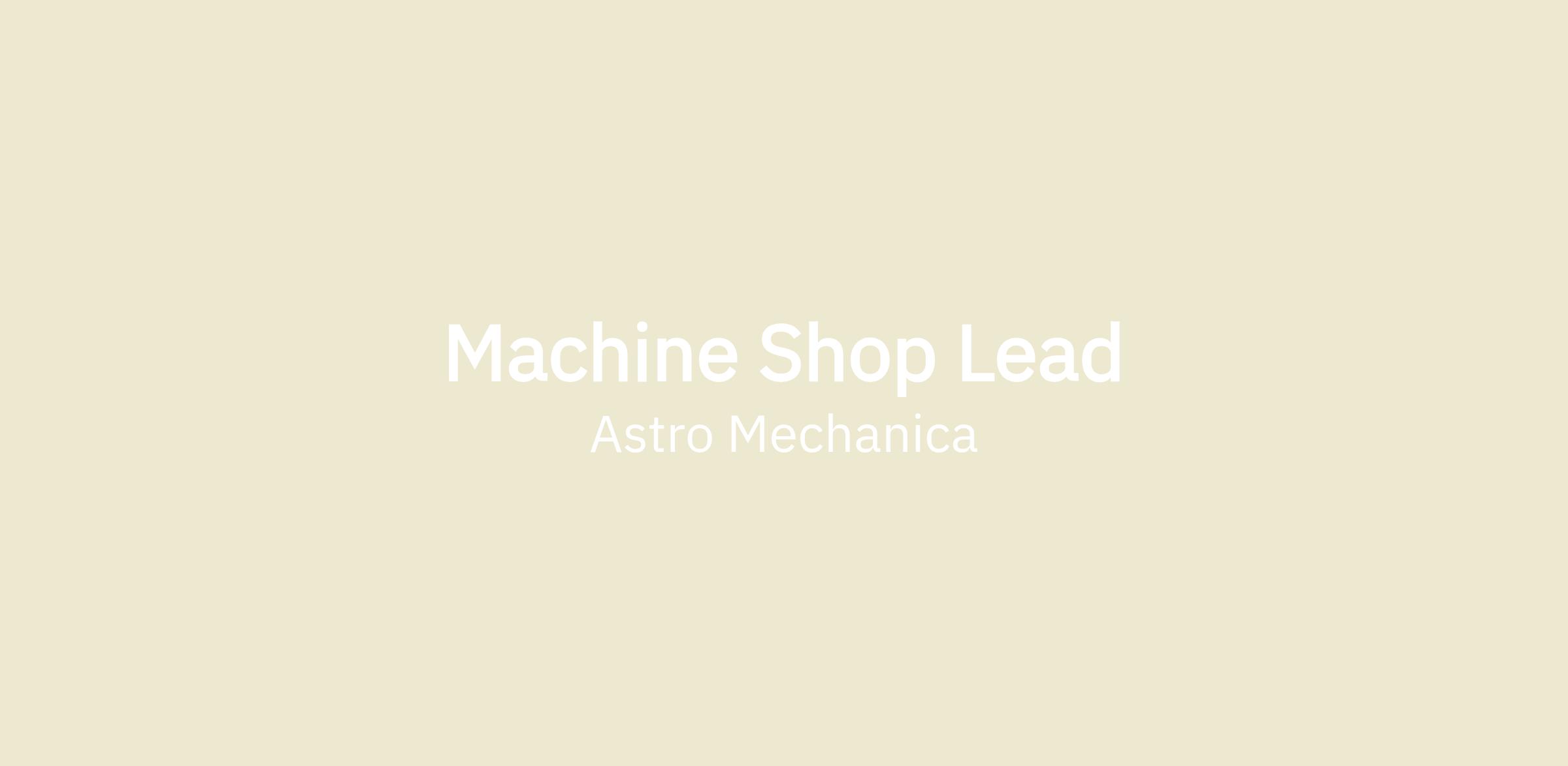 Own day-to-day operations of Astro Mechanica’s in-house machine shop, supporting propulsion, airframe, and test hardware development