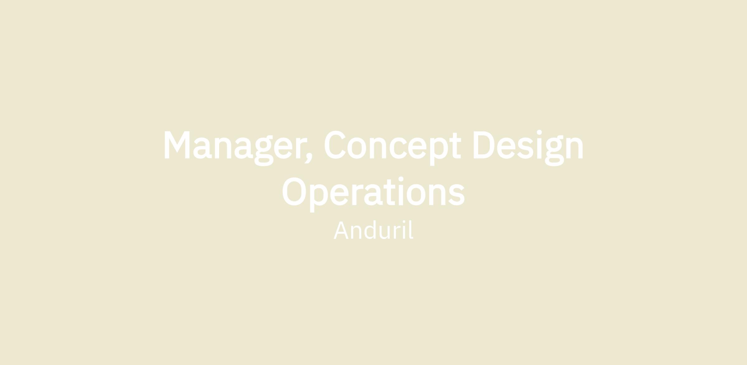 Anduril’s Design Team is seeking a Concept Design Operations Manager to join our team. The Design Team leads Anduril’s brand identity, visual communication, concept art, and industrial design. Our team’s purpose is to connect the mission, people, and products to elevate the Anduril brand.