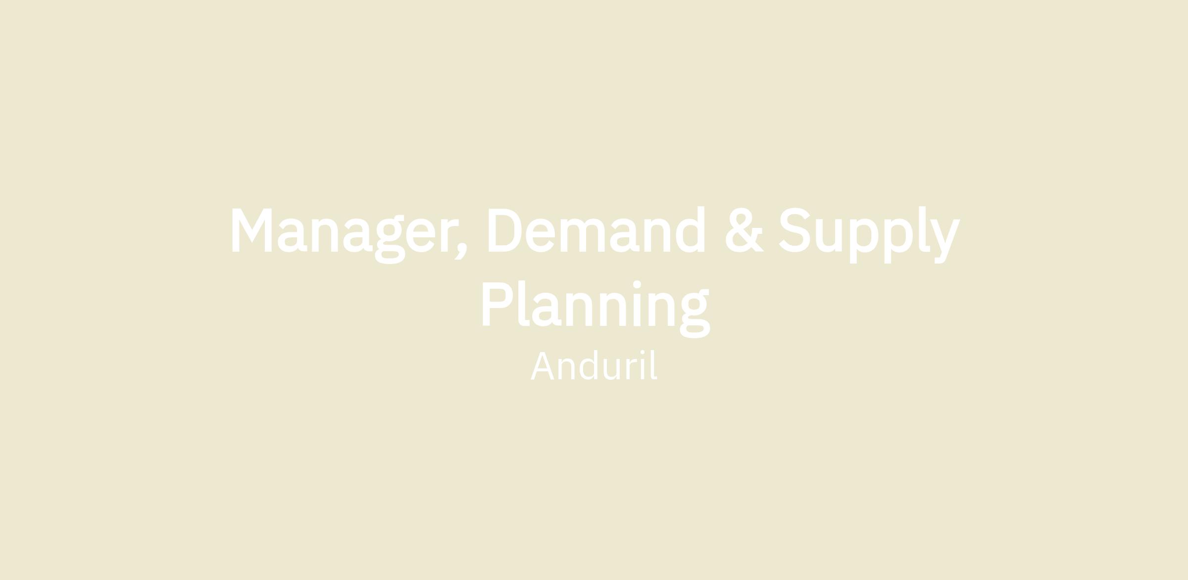 Anduril’s Planning team is seeking an Manager, Demand & Supply Planning to join our team. The Planning team is responsible for planning material and builds to support rapidly iterating and building of cutting-edge defense hardware, including static equipment, mobile ground equipment, and flight vehicles. The Manager Demand & Supply Planning will manage a team of Demand & Supply Planners in executing S&OP and providing in-depth analysis for our business partners. They will ultimately be responsible for sending the correct signals to Purchasing and Manufacturing on what and when to buy or build for each of the supported product lines. The addition of this role is pivotal in transforming our Sales and Operations Planning (S&OP) process, empowering our operations to not only meet but exceed our financial objectives. This strategic hire will be instrumental in driving operational excellence and enhancing our ability to forecast, plan, and execute with greater precision and efficiency.
