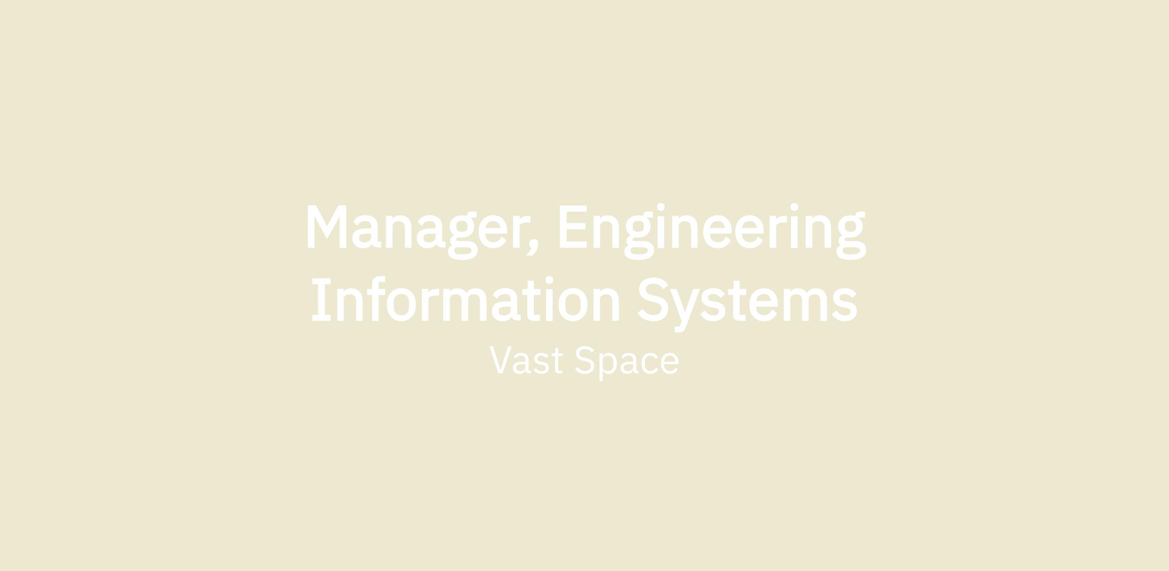 Vast is looking for a Manager, Engineering Information Systems, reporting to the Director, Information Systems, to support the development of the systems that will be required for the design and build of artificial-gravity human-rated space stations.