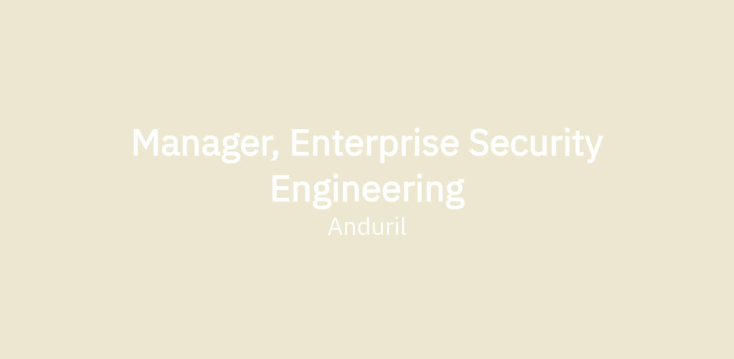 Manager, Enterprise Security Engineering