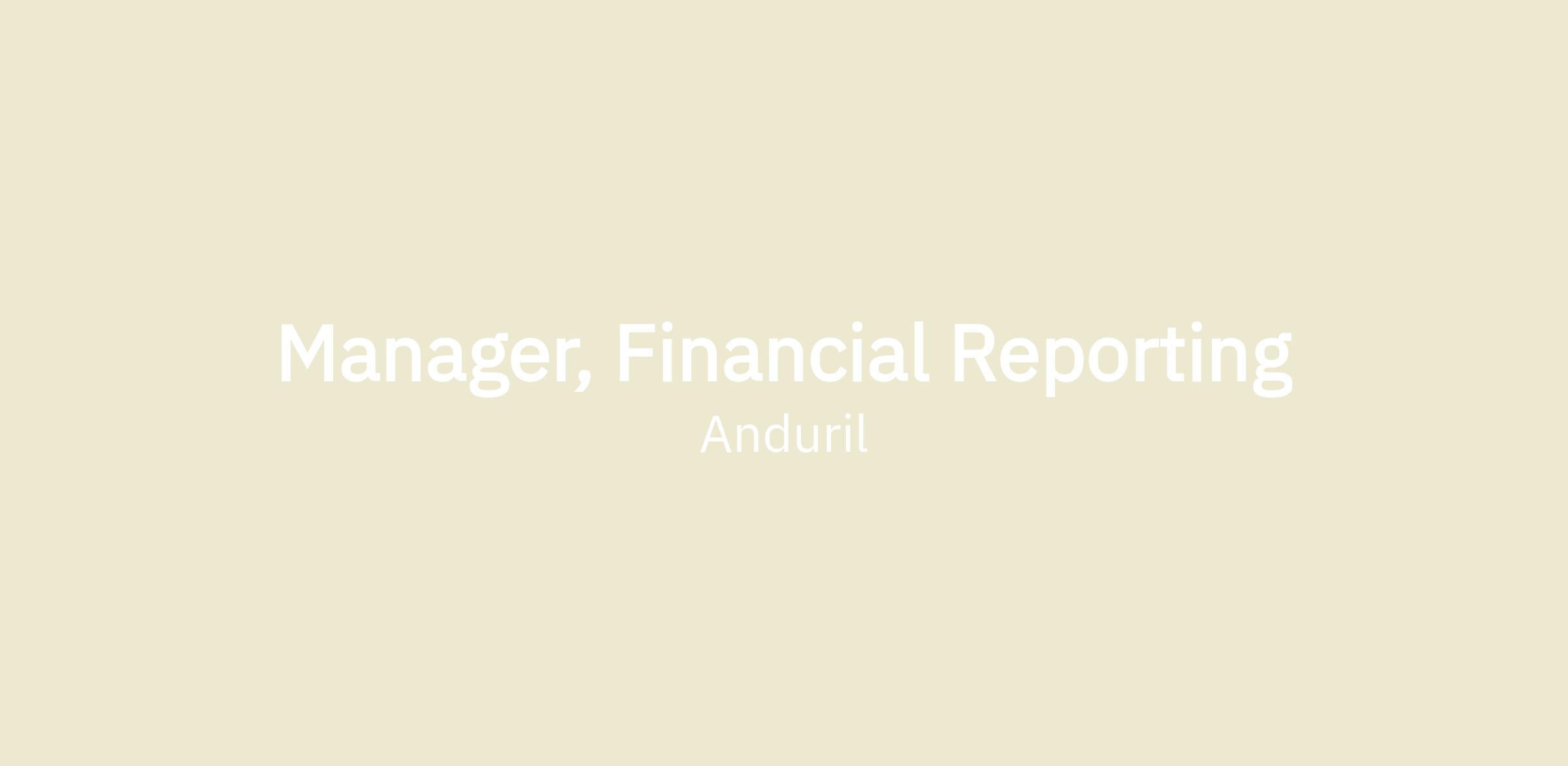 - Assist with Anduril’s possible preparation for a future IPO and ERP implementation.
