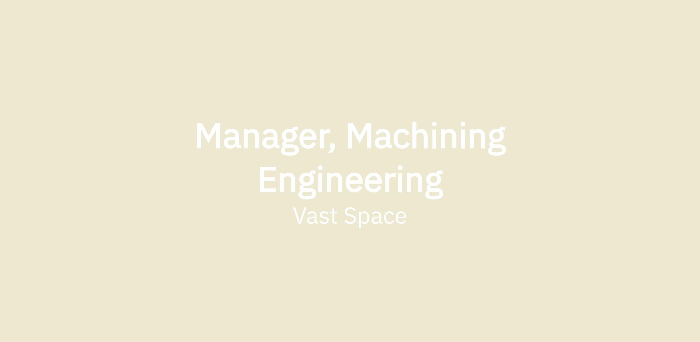 Vast is looking for a Manager, Machining Engineering, reporting to the Senior Manager, Advanced Manufacturing, to support the development of the systems that will be required for the design and build of artificial-gravity human-rated space stations.