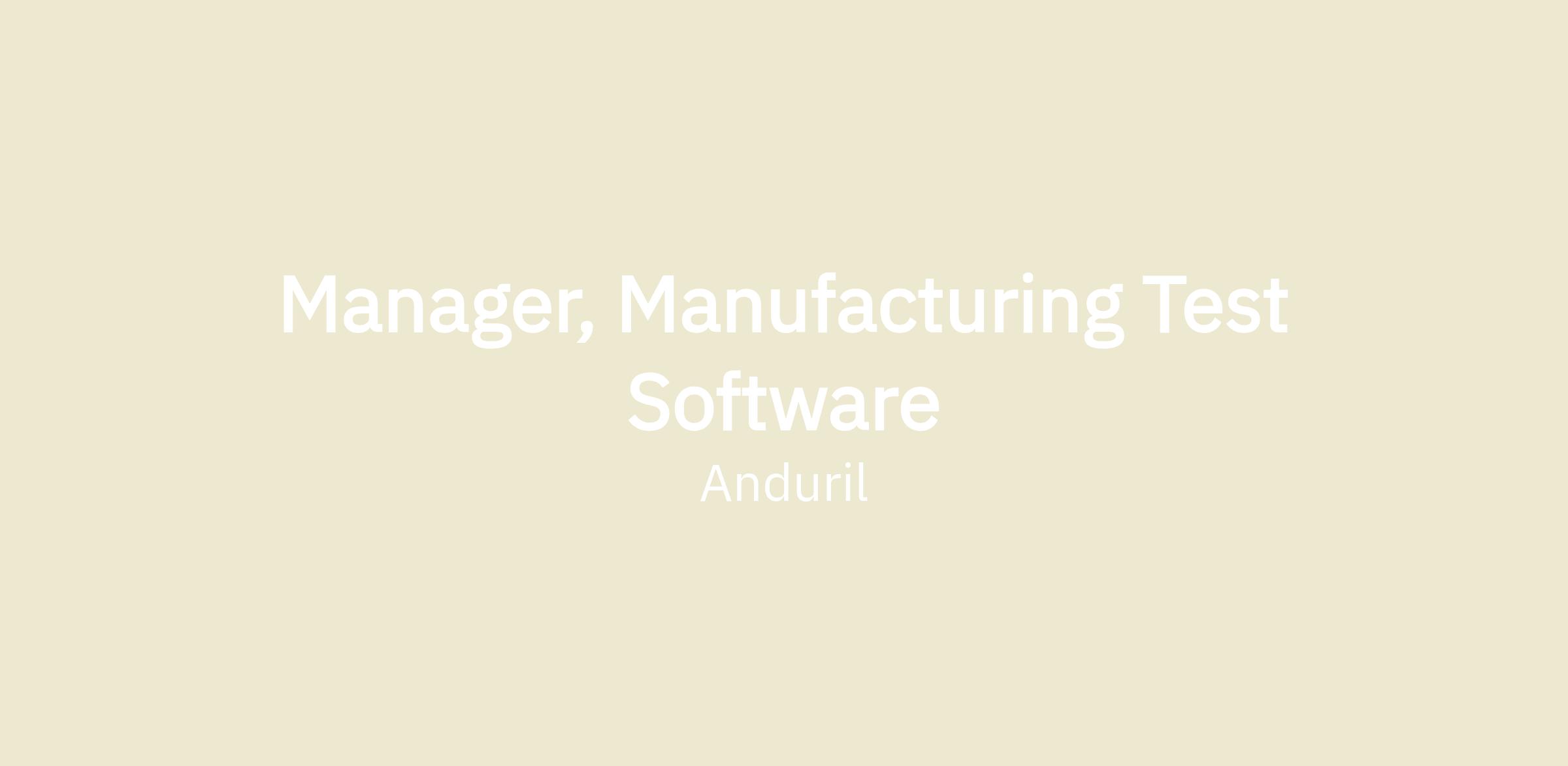 As the Manager of Manufacturing Test Software Engineering, your role encompasses the strategic oversight and tactical management of production systems to support high-volume products across the Anduril portfolio. You are charged with ensuring rigorous testing protocols are in place, resulting in the consistent delivery of superior quality products to our customers. Furthermore, your leadership guarantees the fulfillment of manufacturing's test throughput requirements. This position demands an innovative approach to resolving complex testing challenges, advancing scalability, and enhancing our automation, throughput, user interfaces, and data analytics methodologies.
