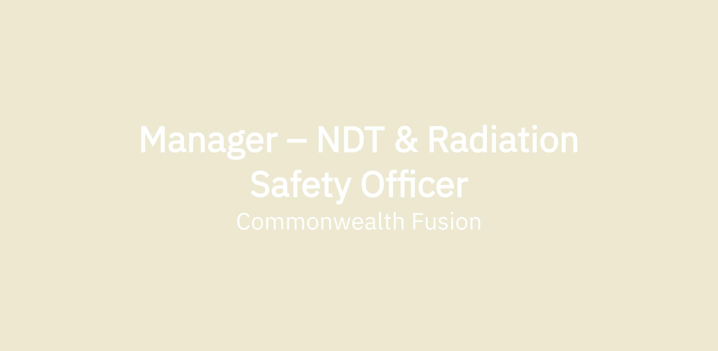 The Manager of NDT and Industrial RSO is the technical owner of NDT Operations and industrial radiography radiation safety at CFS. This role is responsible for developing and maintaining the organization's NDT capabilities to ensure successful delivery of SPARC and to prepare for the future scaling for ARC power plants.