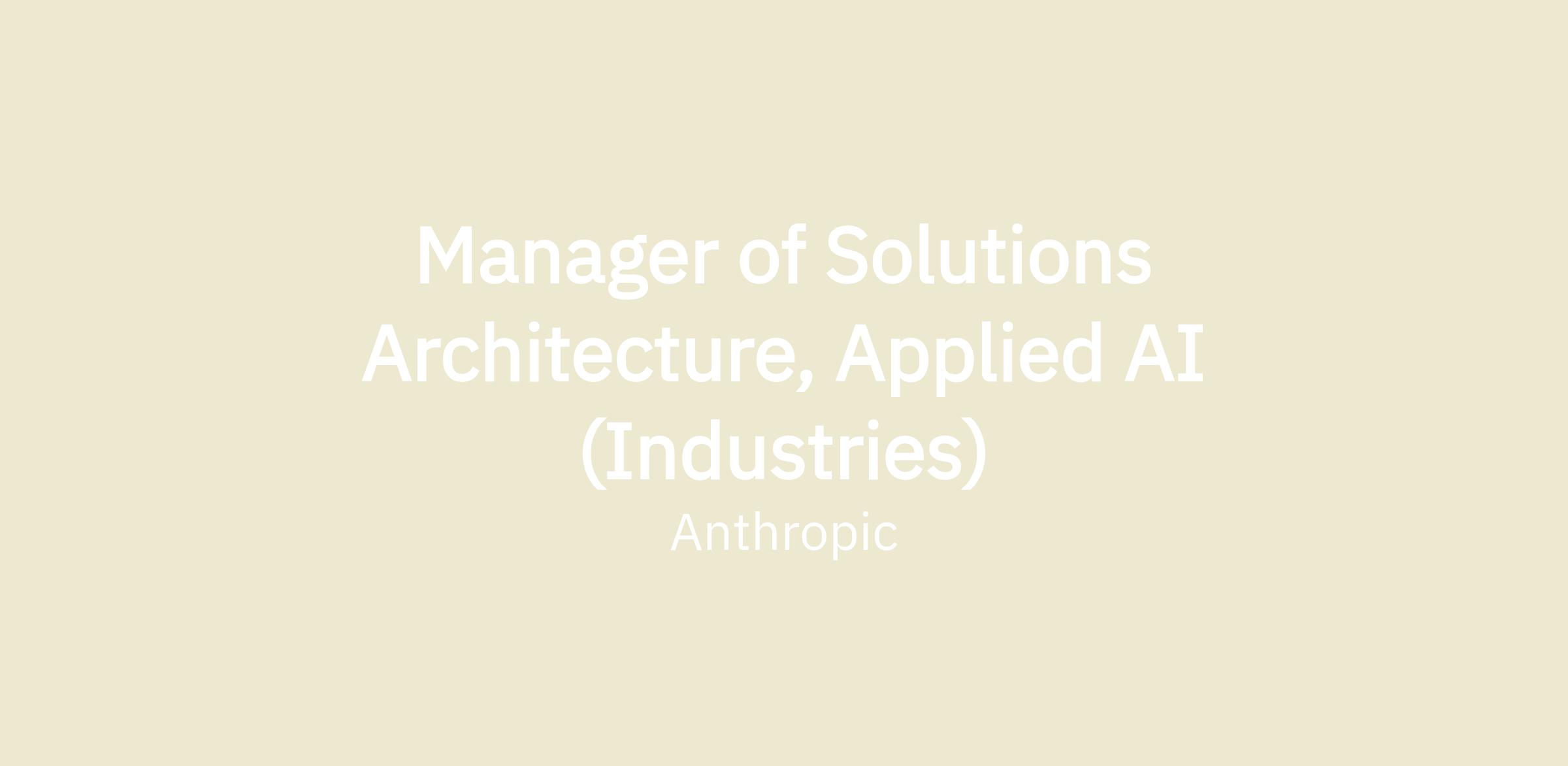 As the Manager of the Applied AI Architect team for DACH Industries at Anthropic, you will drive the adoption of frontier AI by enabling the deployment of Anthropic's products (Claude for Enterprise, Claude Code, and API) across our Industries accounts: large enterprises across all non-tech verticals in Germany, Switzerland and Austria. You'll leverage your technical skills and consultative sales experience to drive positive AI transformation that addresses our customers' business needs, meets their technical requirements, and provides a high degree of reliability and safety.