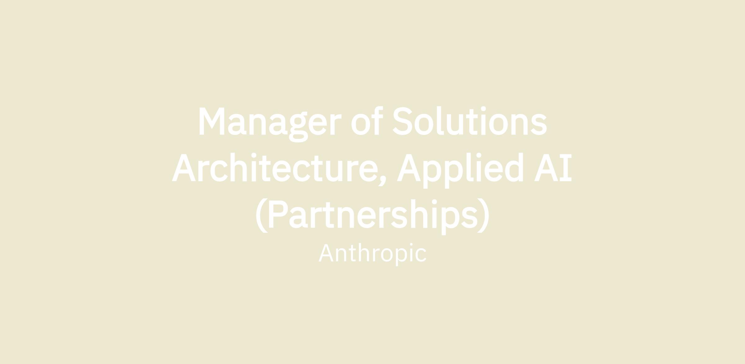 You'll be responsible for leading & growing the International Partnerships Applied AI team, establishing processes and best practices for partner-led pre-sales engagements, helping each team member achieve success, high productivity, and career growth, and representing Anthropic as a technical lead on some of its most important international partnerships.