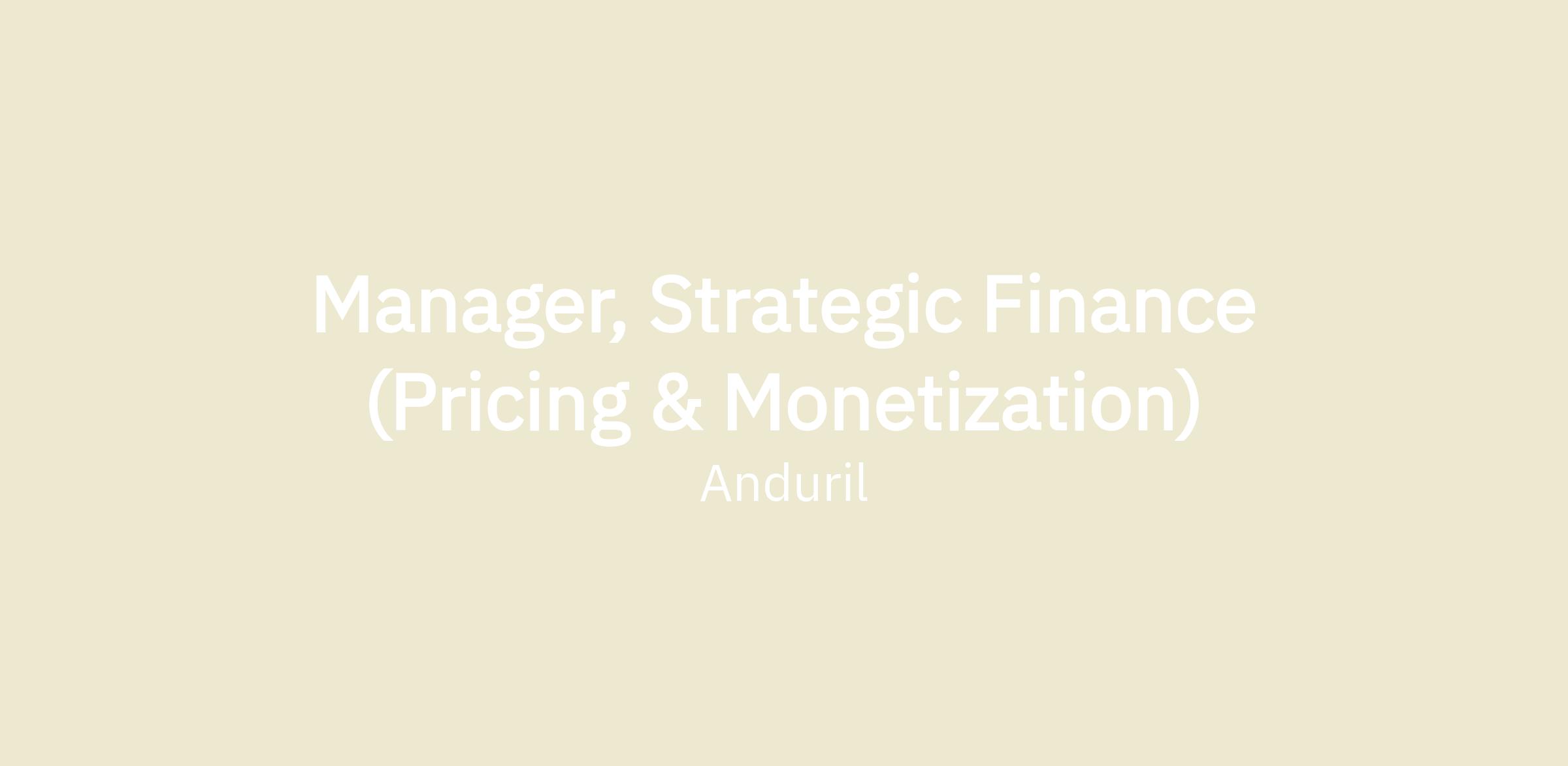 We are seeking a Manager, Strategic Finance (Pricing & Monetization) to join our Connected Warfare Finance team. You will have broad scope across multiple Connected Warfare business lines, working directly with growth, engineering, and operations teams to maximize business value and accelerate growth.