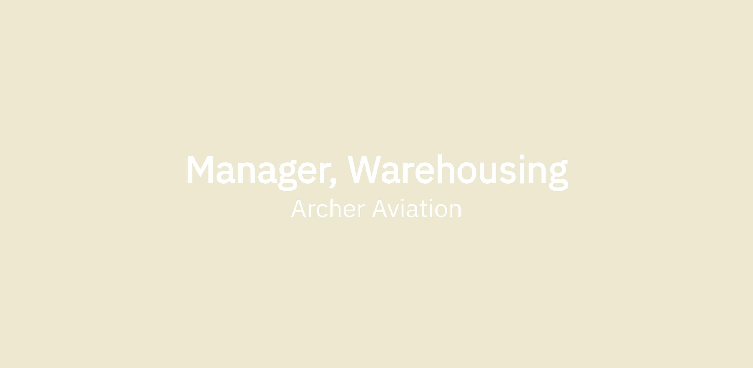 - Archer is seeking a highly capable Warehousing Manager to lead and scale our internal and external warehouse operations. This role is responsible for the systems, tools, compliance frameworks, and day-to-day execution that ensure aircraft parts, batteries, tooling, and other high-value assets move efficiently across Archer’s factories, test sites, and supplier network. The Warehousing Manager will play a critical role in ensuring the right materials are in the right place at the right time to support Archer’s rapidly growing production and flight-test programs.