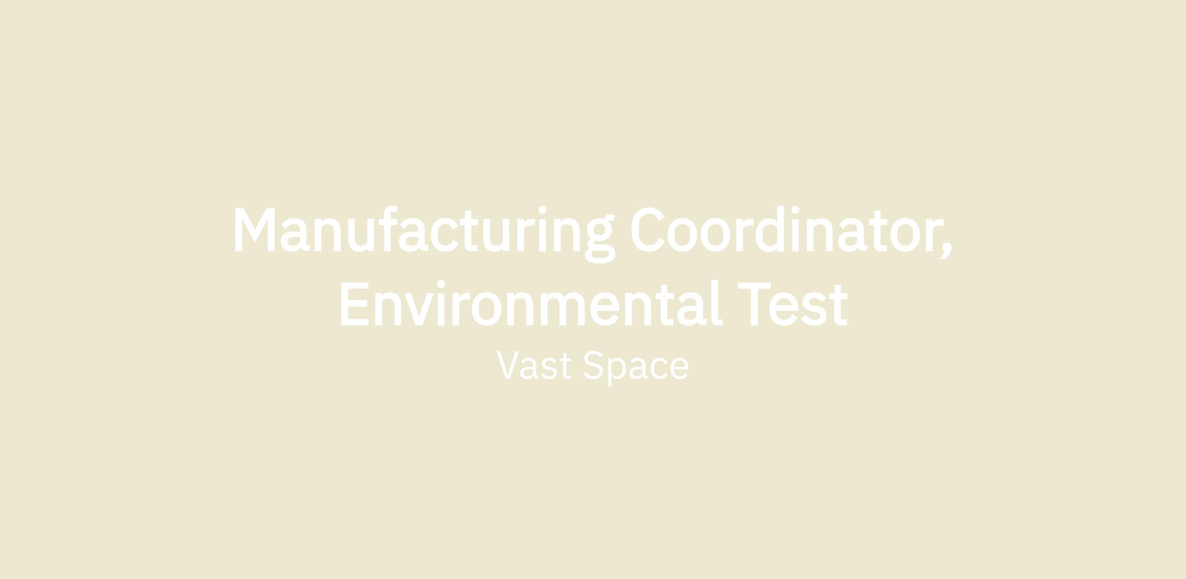 Vast is looking for a Manufacturing Coordinator, Environmental Testing, reporting to the Manager, Manufacturing Operations, to support the development of the systems that will be required for the design and build of artificial-gravity human-rated space stations. This role is responsible for coordinating, ensuring material delivery meets with schedule timelines. You’ll be working cross-functionally with manufacturing, engineering, procurement, and quality assurance teams to maintain production flow and resolve any blockers proactively. As the coordinator for the Environmental Test Lab, this individual will be responsible for working with the Environmental Testing leadership team to ensure that all deadlines are met.