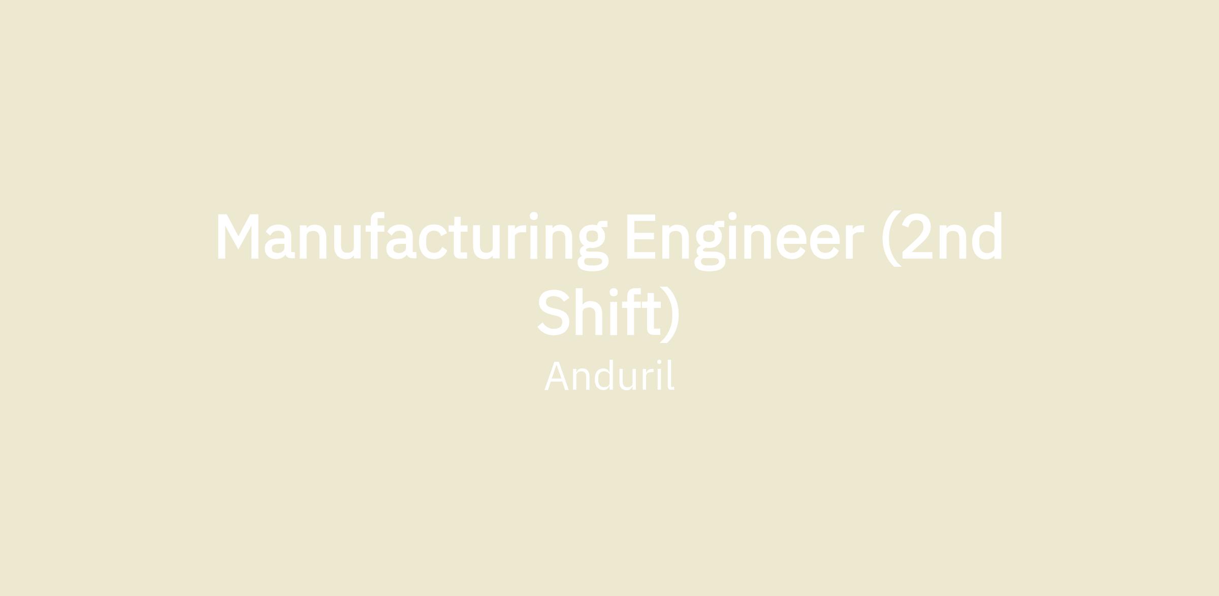 Anduril’s Manufacturing team is seeking a Manufacturing Engineer to join our team. The Manufacturing Team is responsible for rapidly iterating and building cutting-edge defense hardware, including static equipment, moving ground equipment, and flight vehicles. This responsibility includes everything in the manufacturing value-chain, including, but not limited to, Design for Manufacturability work, tool design & selection, process creation & optimization, vendor sourcing & interaction, quality planning, and work documentation associated with the hardware that the Manufacturing Engineer owns.