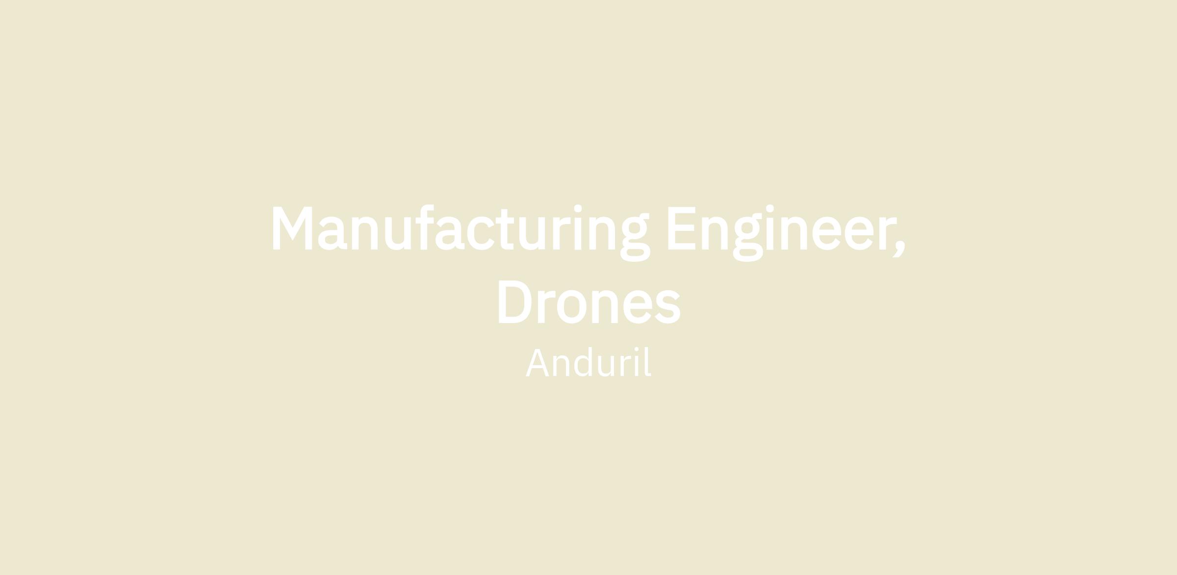 Anduril’s Drones team is seeking a highly motivated and experienced Manufacturing Engineer to join our rapidly growing team. In this pivotal role, you will be responsible for bridging the gap between cutting-edge design and efficient, high-volume production for our advanced Unmanned Aerial Systems (UAS) like Bolt, Ghost, Anvil, and future autonomous platforms.