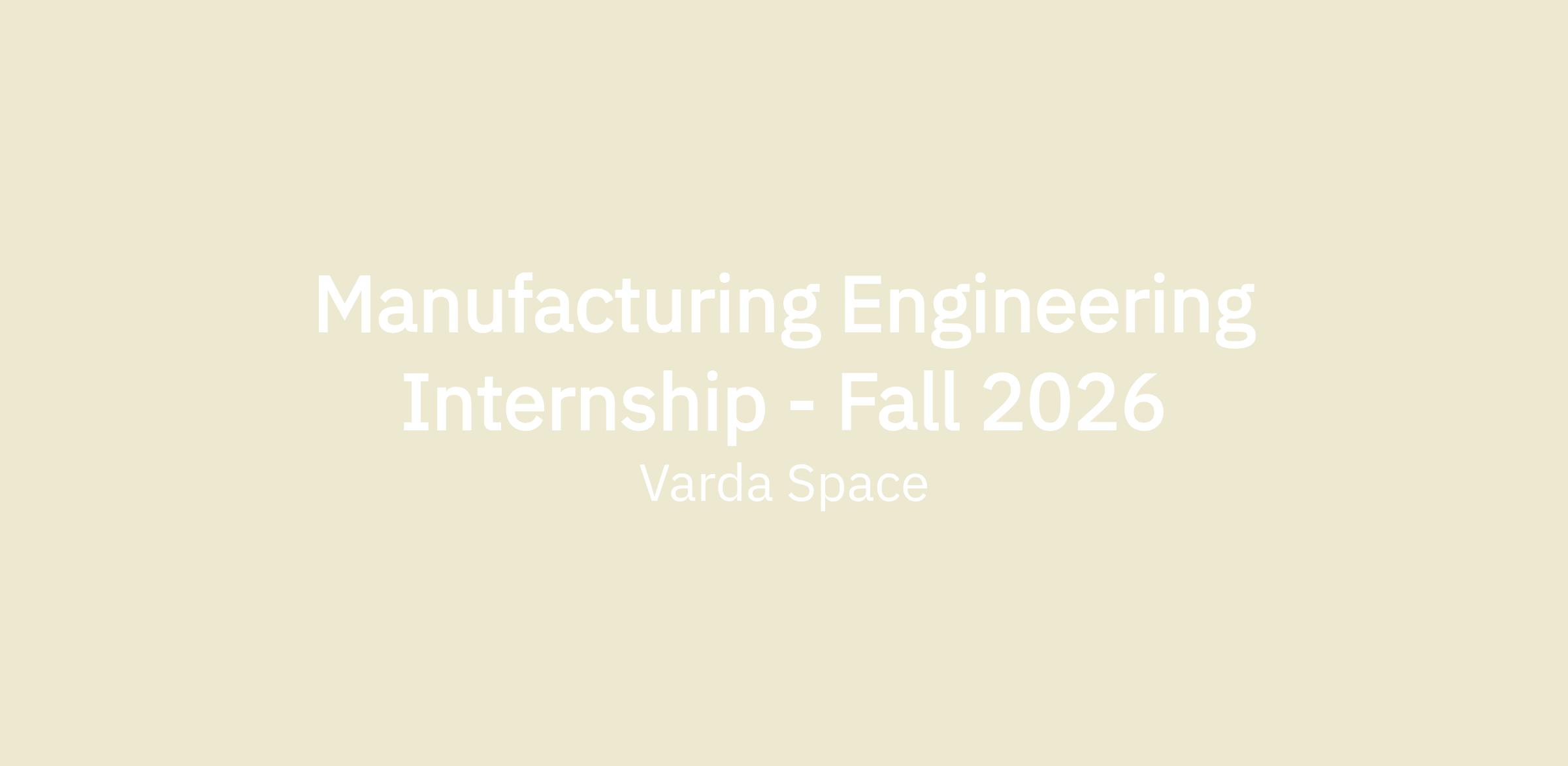 The Manufacturing Engineering Team at Varda is responsible for the assembly and integration of our spacecraft and reentry systems. Interns on this team play a critical role in bridging the gap between design and production, gaining hands-on experience with flight hardware, build operations, and real-time problem solving. Whether you're designing production tooling, refining hardware for manufacturability, or designing the factory itself, you’ll be directly contributing to mission success.