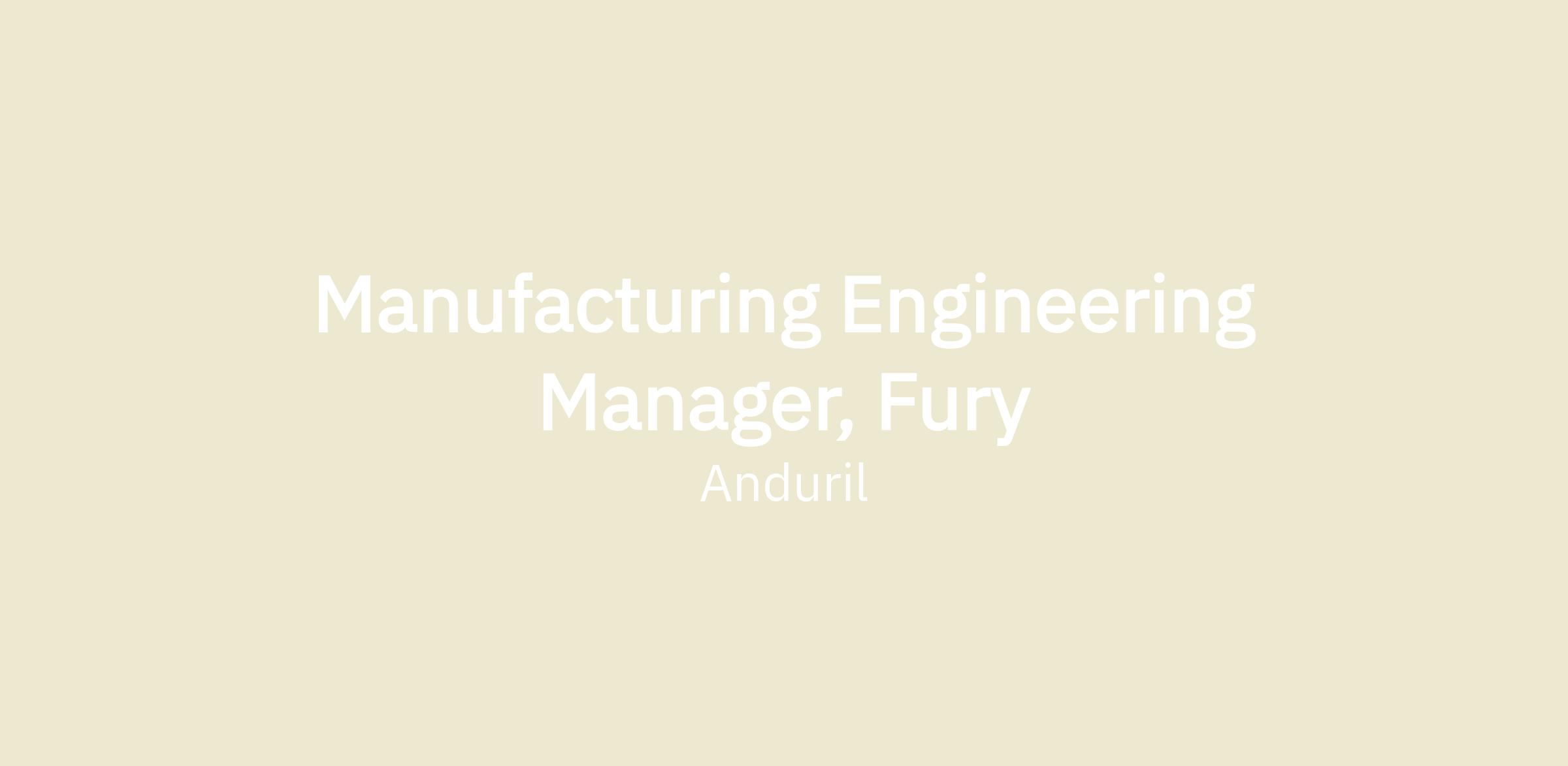 - Lead the manufacturing engineering team building Fury from initial prototyping through large full-scale production - setting goals, providing direction, and evaluating performance.