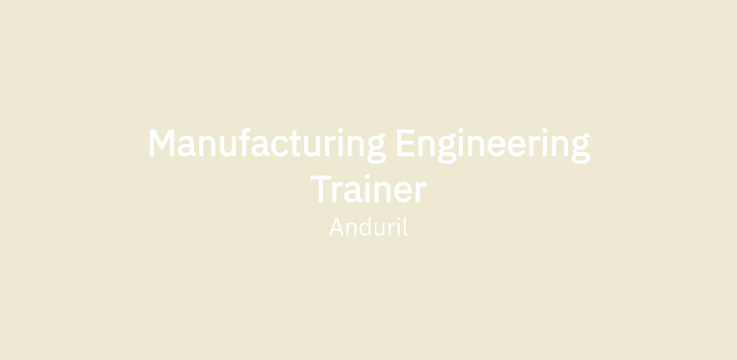 Anduril Industries is seeking an Engineering Trainer to join our Manufacturing Training team to support our Manufacturing Engineers. You will be responsible for developing and facilitating training content for manufacturing engineers, ensuring accuracy and consistency across all materials. You will collaborate with engineering personnel, program managers, and subject matter experts to create comprehensive training materials for existing and new systems/processes. This role is critical to scaling internal knowledge, enabling product readiness, and enhancing our manufacturing team’s ability to produce cutting edge defense capabilities.