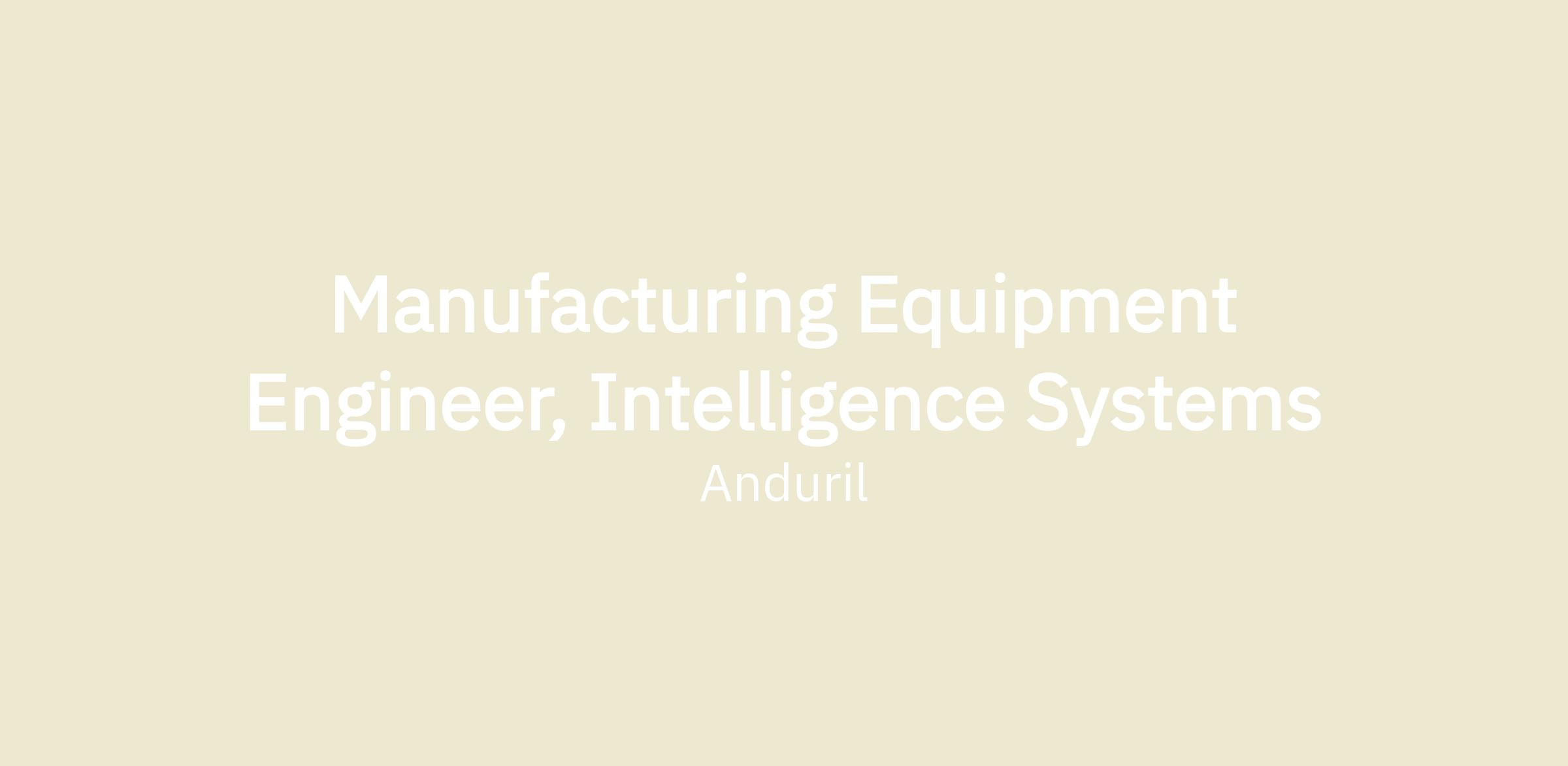 Anduril's Manufacturing Engineering is seeking a Manufacturing Equipment Engineer to join our team. The Manufacturing Engineering department develops and implements robust manufacturing processes and tooling solutions to ensure Anduril's defense products are produced efficiently, reliably, and at scale at Anduril.