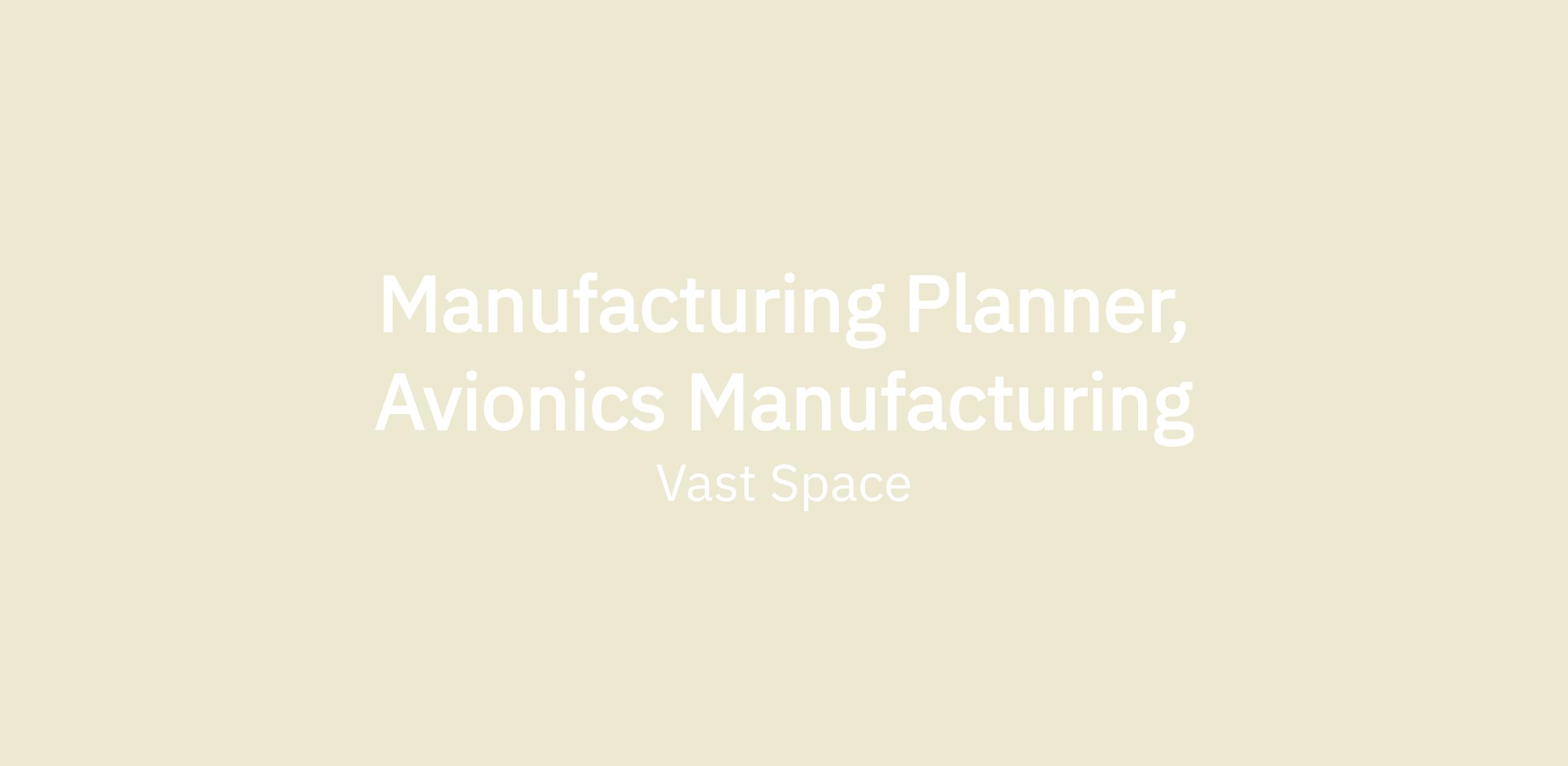 Vast is looking for a Manufacturing Planner, Avionics Manufacturing reporting to the Director of Avionics Manufacturing and Environmental Test, to support the development of the systems that will be required for the design and build of artificial-gravity human-rated space stations.