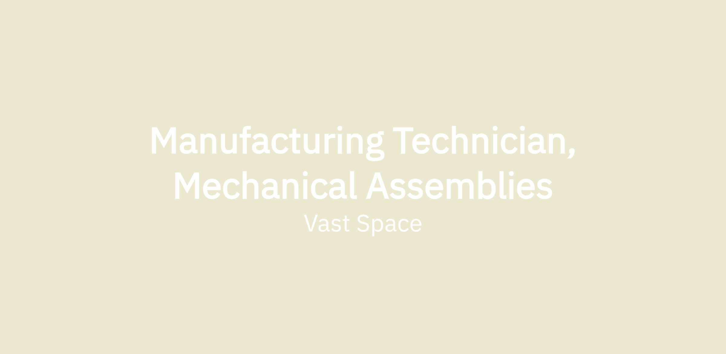 Vast is looking for a(n) Manufacturing Technician, Mechanical Subassemblies, reporting to the Supervisor, Mechanical Sub-Assemblies, to support the development of the systems that will be required for the design and build of artificial-gravity human-rated space stations.