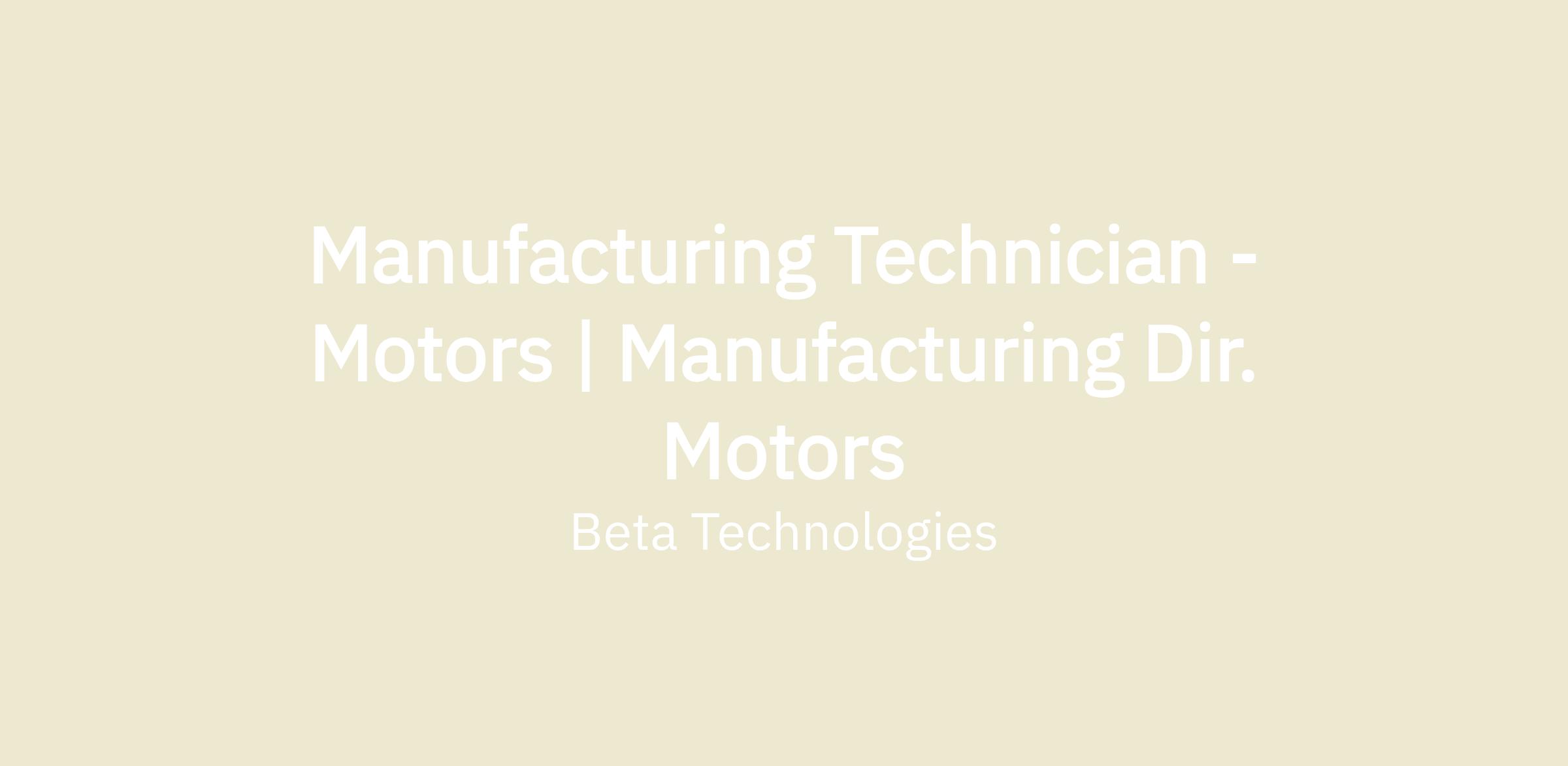 The Manufacturing Technician is responsible for production operations on innovative electric aircraft components through hands on assembly. As a Manufacturing Technician at Beta Technologies, you will work in a small team environment as we develop a low volume production area to a fully established manufacturing department. As an open-minded and outside-the-box thinking you will perpetually strive to supplement your past experience with new knowledge gained every day through research and experimentation. You will perform daily hands-on production assembly tasks while also devoting time to refining manufacturing processes, design jigs and fixtures, introduce new tools and equipment ideas to the manufacturing team and continuously improve quality and through put to align with high level business goals. You will work closely with your peers to thread design changes from ongoing product development efforts seamlessly into existing build processes. You will be challenged every day and probably have a lot of fun.