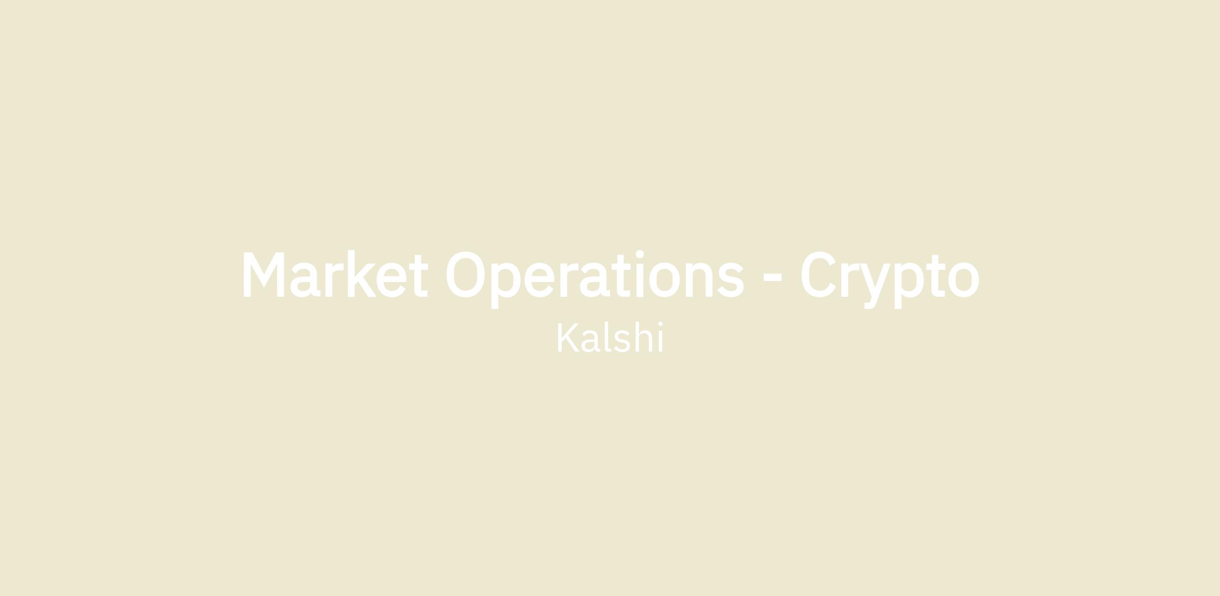 We’re looking for a detail-oriented and execution-focused Market Operations team member to support Kalshi’s growing Crypto markets. You’ll own the launching, running, and settling of crypto-related markets in a fast-moving, highly regulated exchange environment.