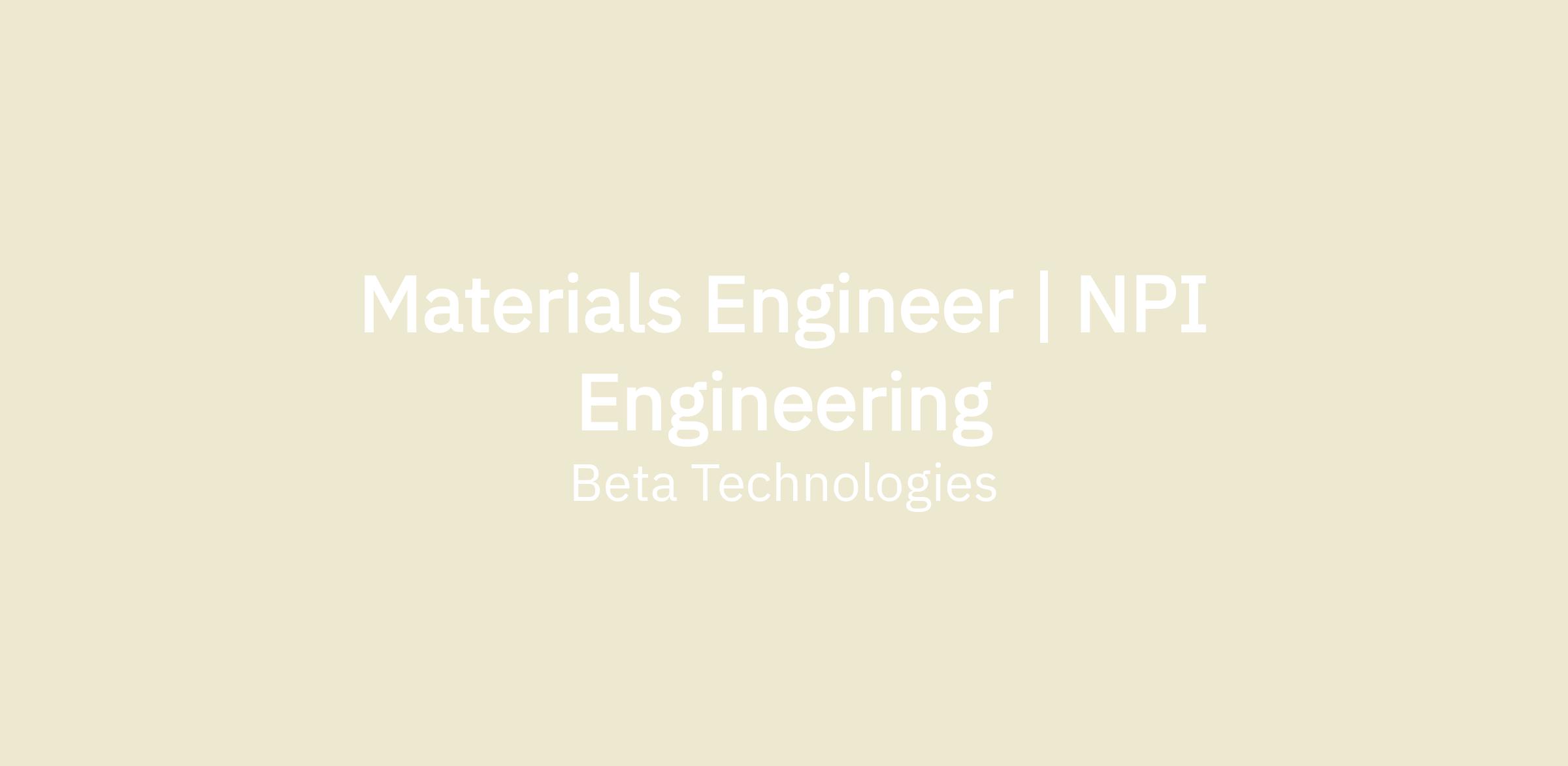As a member of the Advanced Materials and Processes team, you will collaborate with a broad range of team members to deliver new technologies that will enable Beta to achieve profitable full rate production. This position offers the possibility to learn something new every day and contribute to the future of aviation.