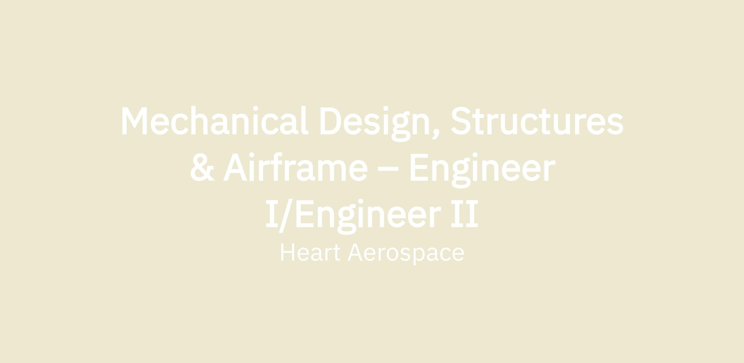 As a Mechanical Design Engineer, Structures & Airframe, you will design, analyze, and develop aircraft structural components under the guidance of senior and staff engineers. You will collaborate cross functionally to the design of the fuselage, wing, and empennage, working with both composite and metallic materials, while gaining hands-on exposure to certified aerospace hardware development in a fast-paced, collaborative environment.