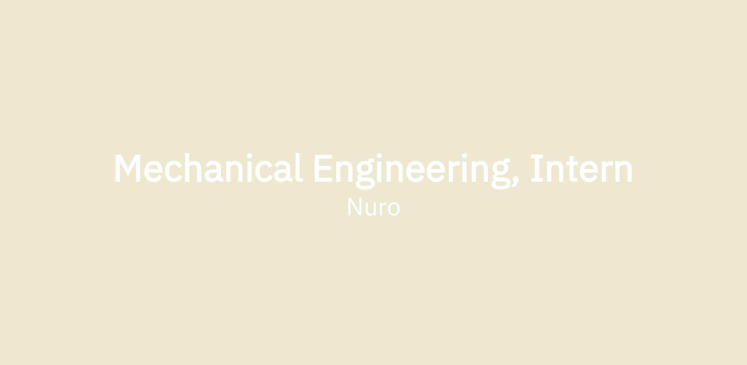 - On-site role at Nuro HQ in Mountain View, CA, and at our San Jose vehicle modification facility.