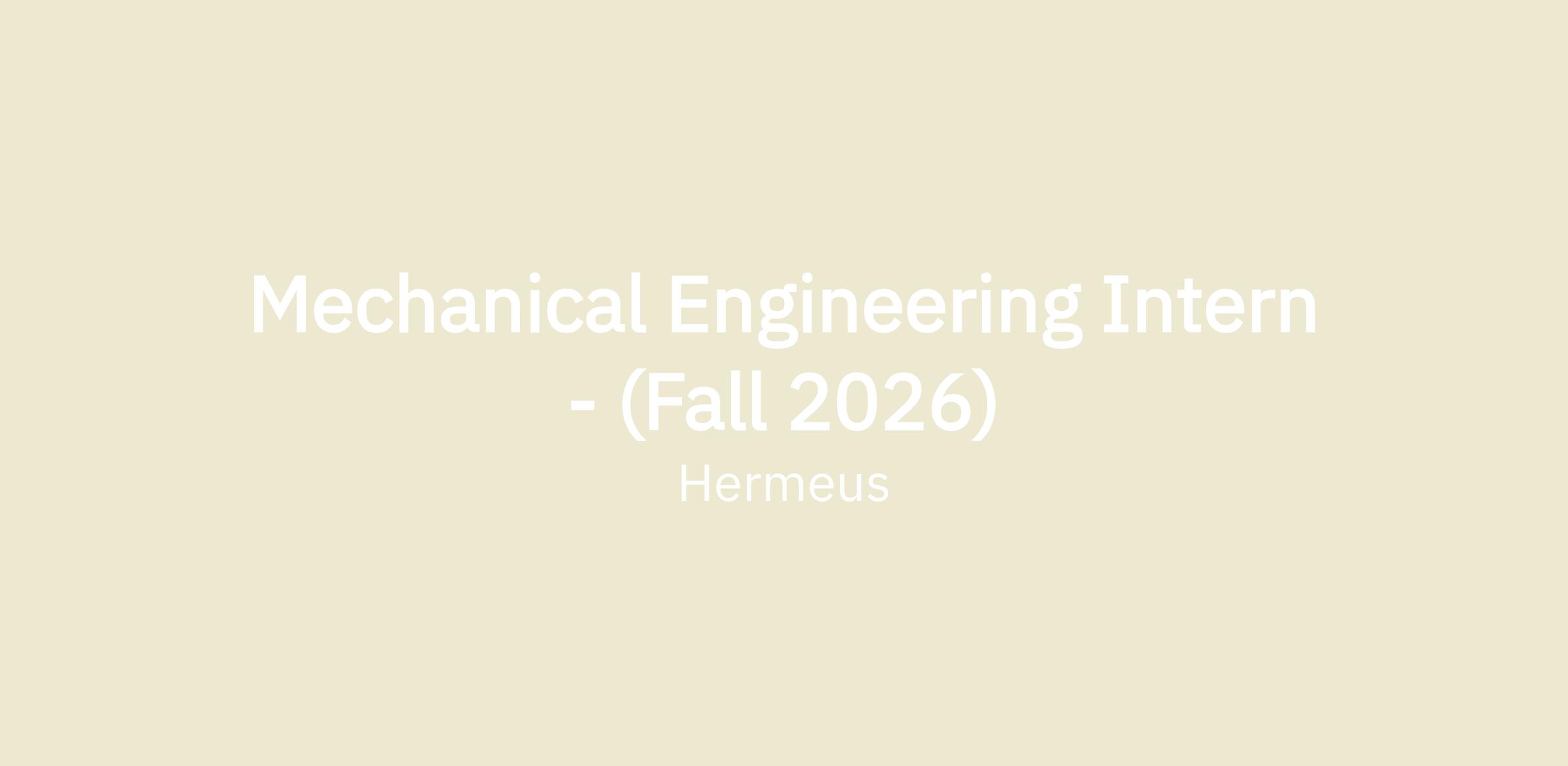 Mechanical Engineering Intern - (Fall 2026)