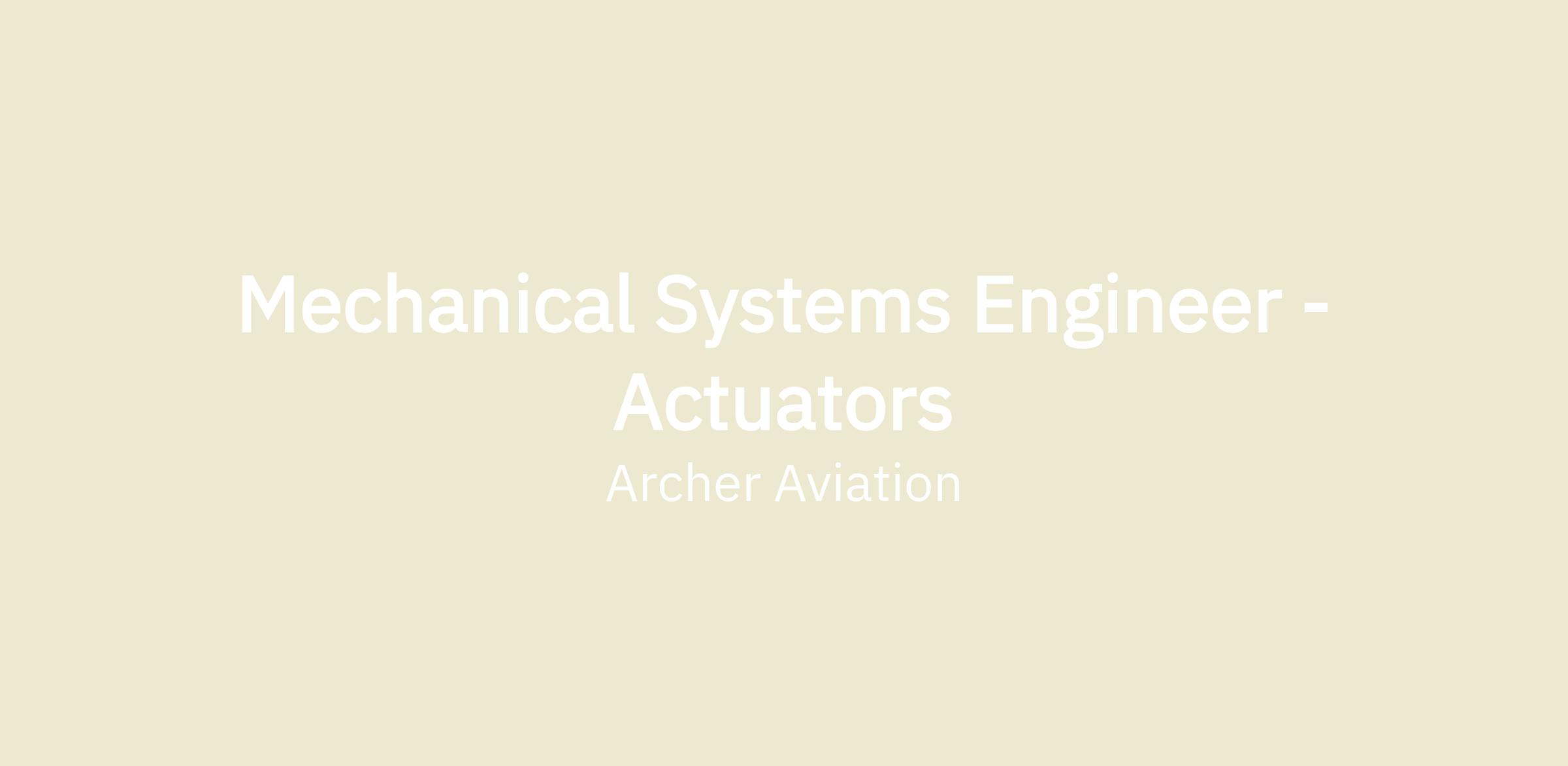 Archer is seeking an experienced Mechanical Systems Engineer – Actuators to lead the design, integration, and validation of high-performance electromechanical actuators for our prototype aircraft. This role requires an understanding of actuator system architecture, requirements development, and performance analysis, as well as multidisciplinary integration across electrical, controls, and thermal domains. As part of our prototype engineering team you will pave the way for our production intent engineering team.