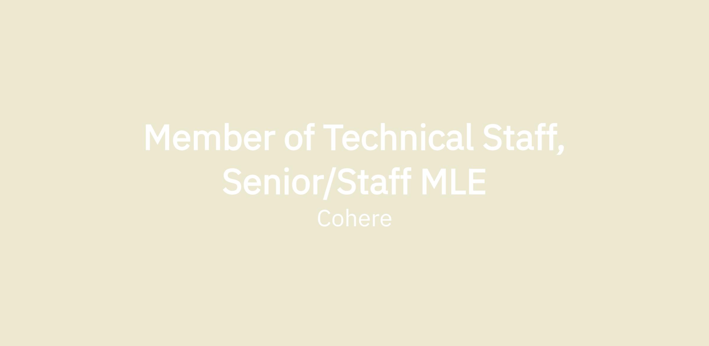 This is a pivotal moment in Cohere’s history. As an MTS in Applied ML, you will define not only what we build — but how the world experiences AI. If you're excited about building custom models, solving generational problems for global organizations, and shaping frontier-model capabilities, we’d love to meet you.