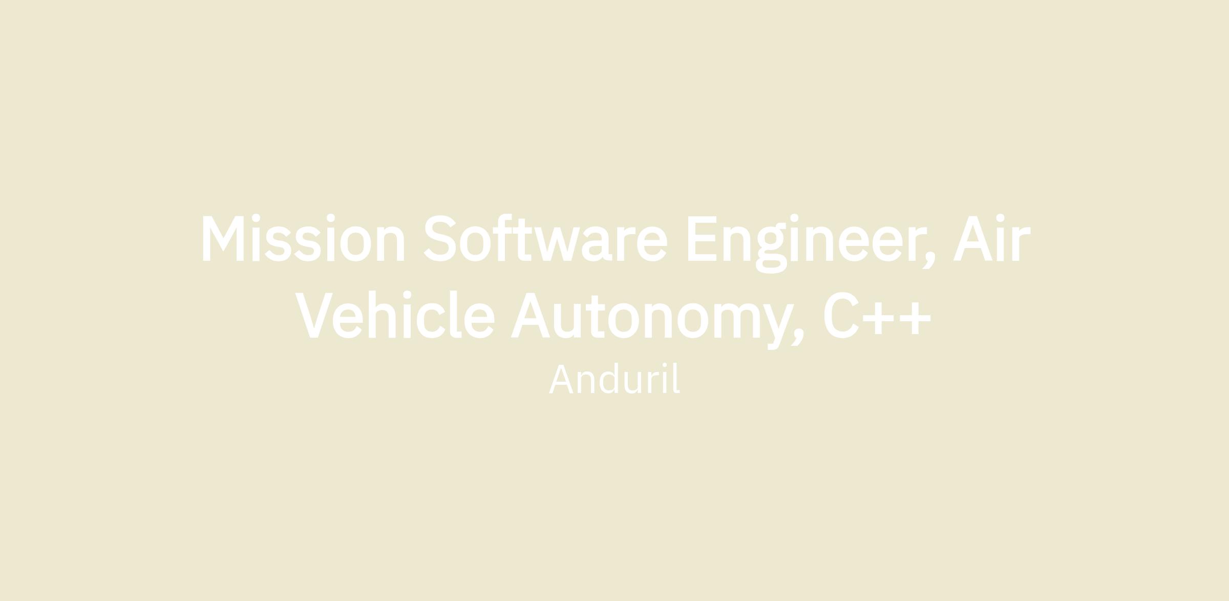 The Air Dominance & Strike team at Anduril develops aerial and multi-domain robotic systems. The team is responsible for taking products like Fury (unmanned fighter jet) and Barracuda (air-breathing cruise missile) from concept to product. The team also develops Lattice for Mission Autonomy, Anduril’s premier software platform that enables masses of Fury, Barracuda, and other first and third party robots to collaborate across various missions. We work in close coordination with specialist teams like Perception, Motion Planning, Hardware, and Test Engineering to solve some of the hardest problems facing our customers. We are looking for software engineers and roboticists excited about creating a powerful autonomy software stack that includes computer vision, motion planning, SLAM, controls, estimation, and secure communications.