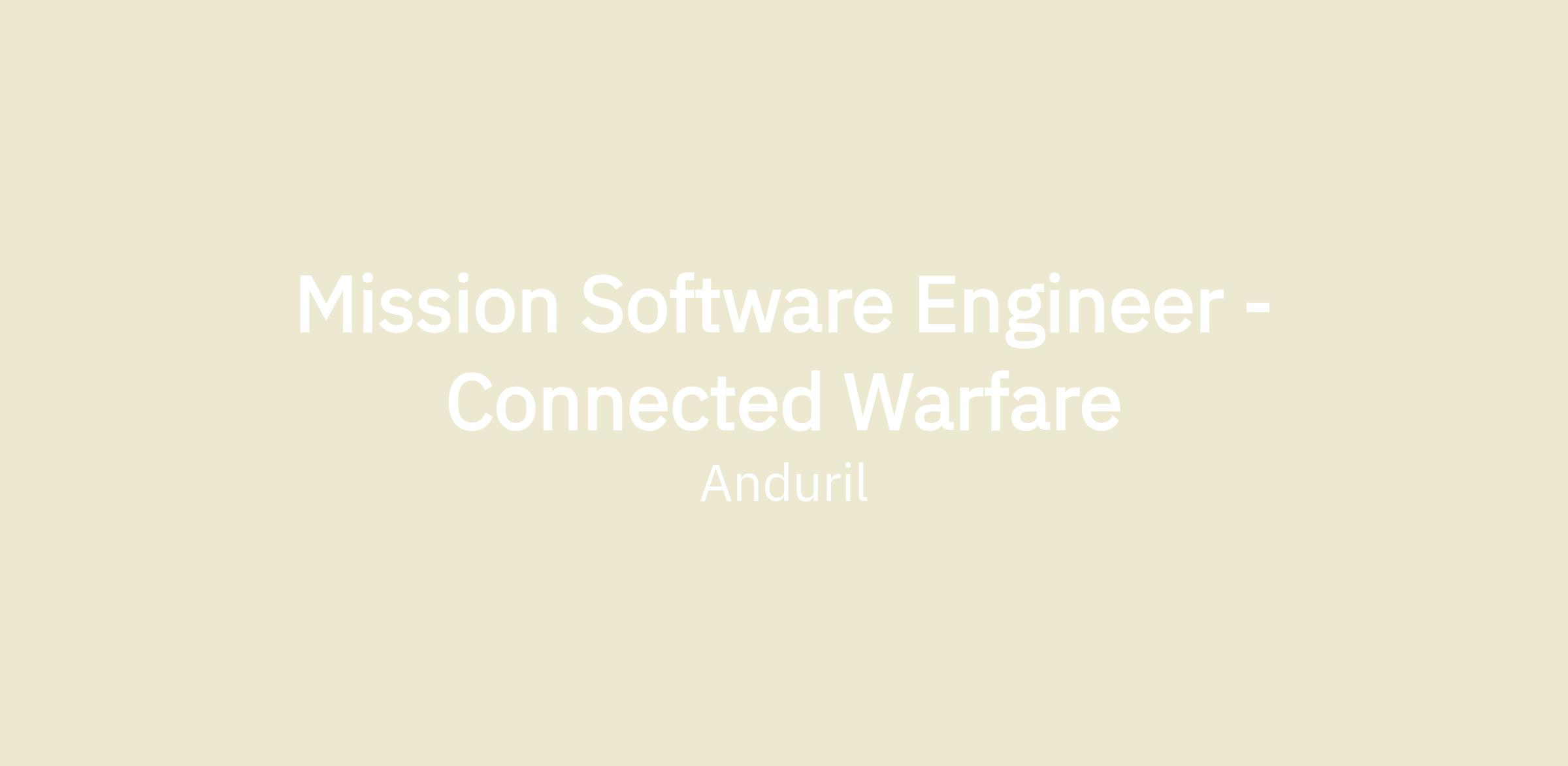 Connected Warfare is one of Anduril's Business Lines focused on building a next-gen software-defined distributed C2 architecture focused on orchestrating and automating 3rd party combat-fielded sensors and strike-networks for synchronized joint operations. We work with mission partners and operators to deploy reliable and robust capabilities on operationally-relevant fielding timelines to meet complex challenges across the military.