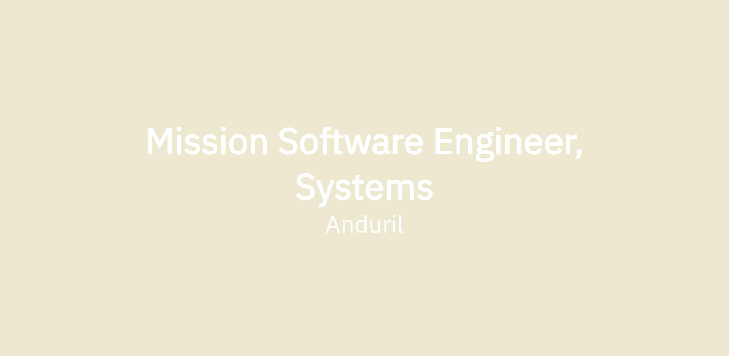 Mission Software Engineer, Systems
