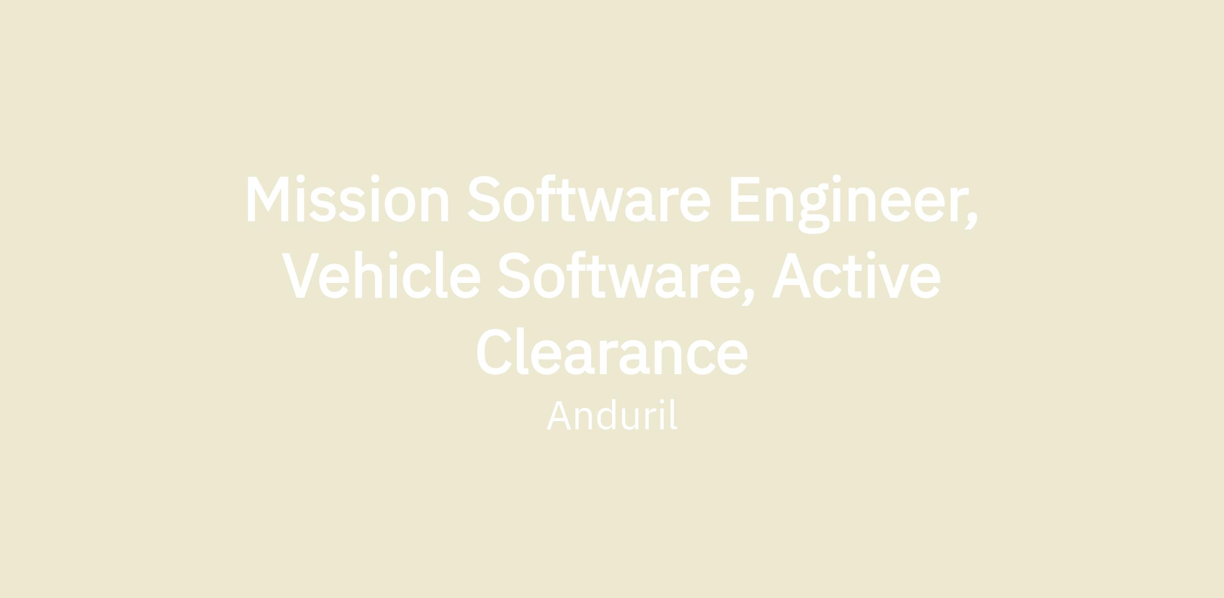 Mission Software Engineer, Vehicle Software, Active Clearance