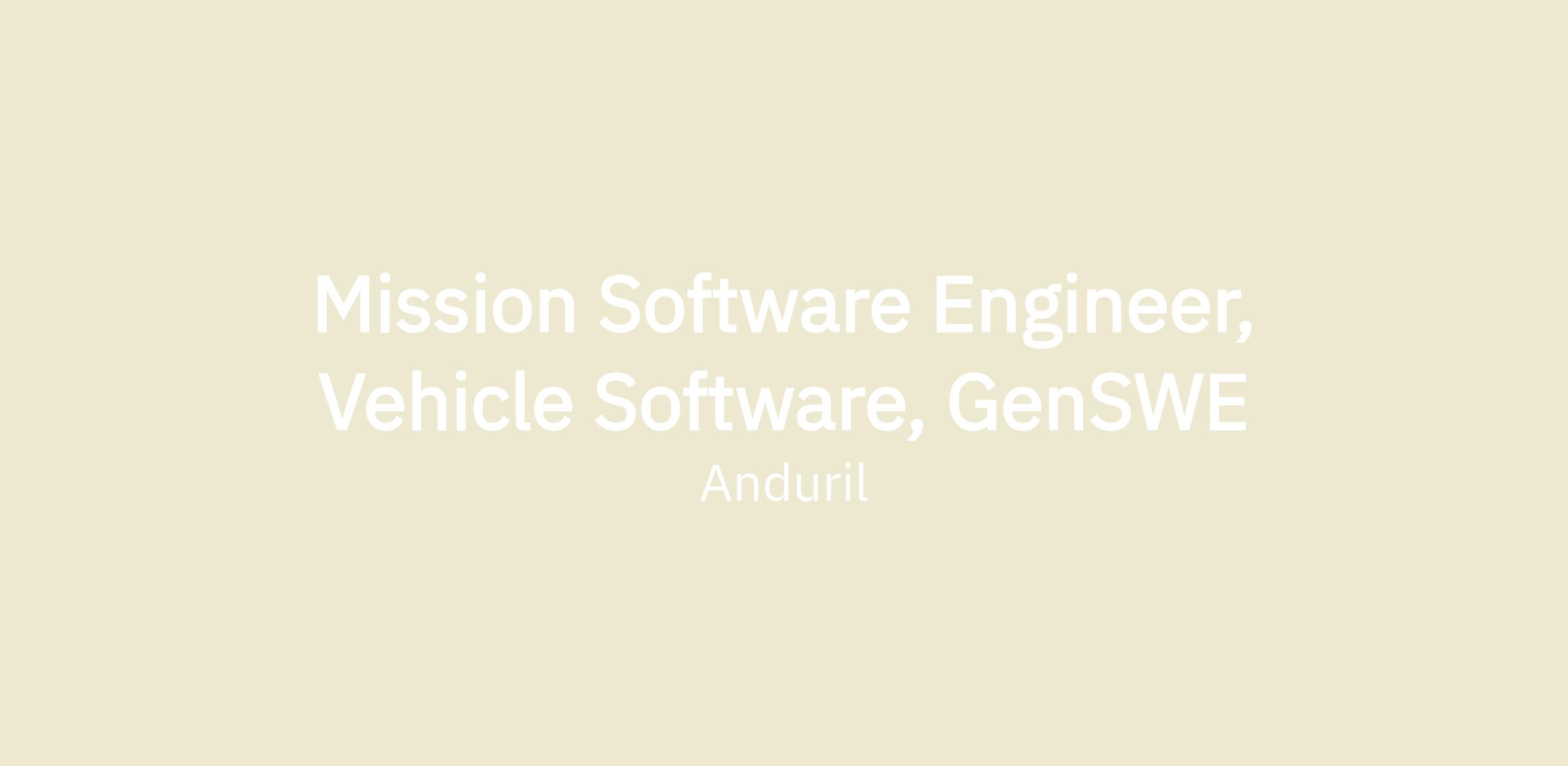 Mission Software Engineer, Vehicle Software, GenSWE
