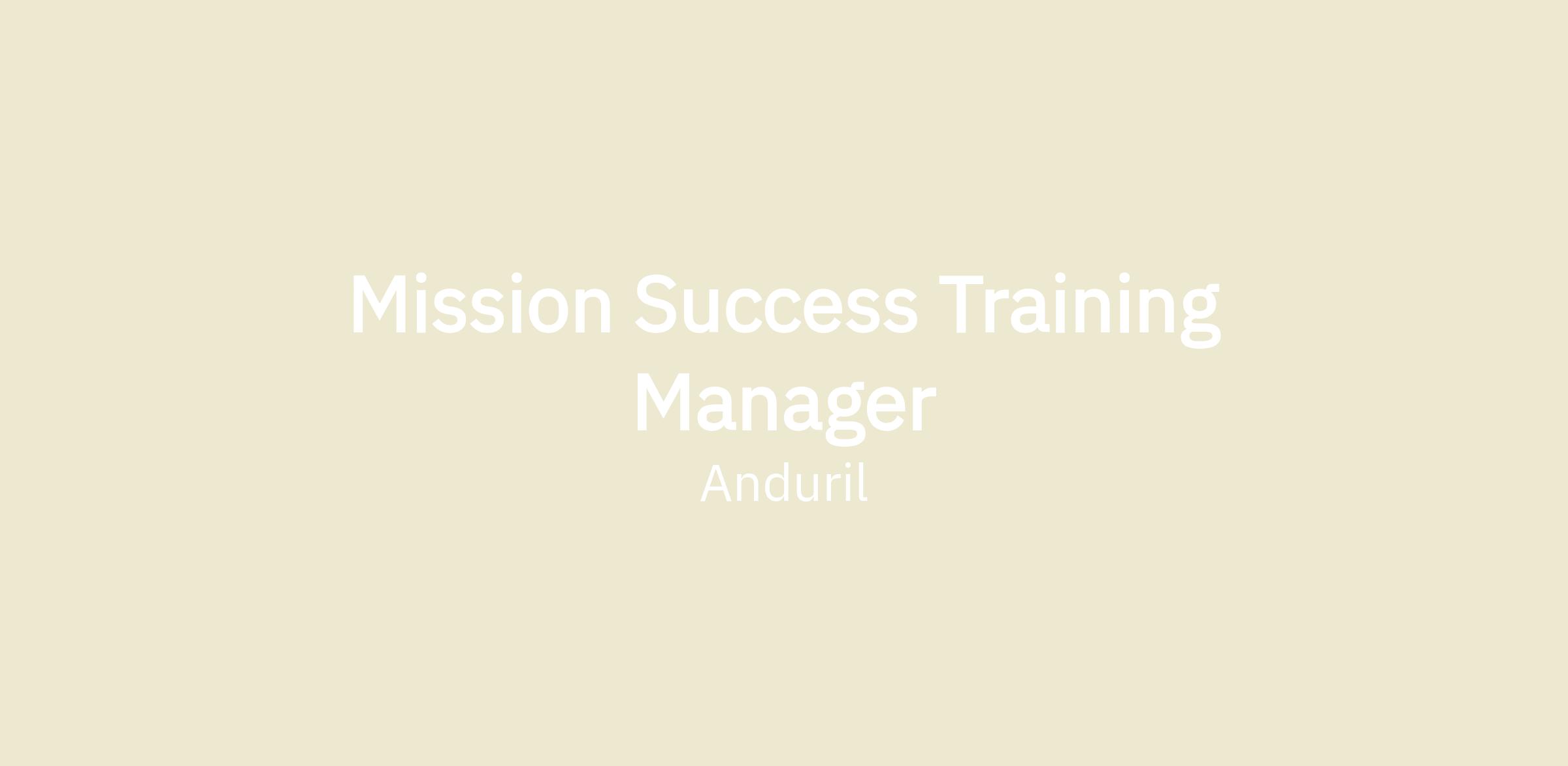 - Orchestrate the expeditionary delivery of training on Anduril products