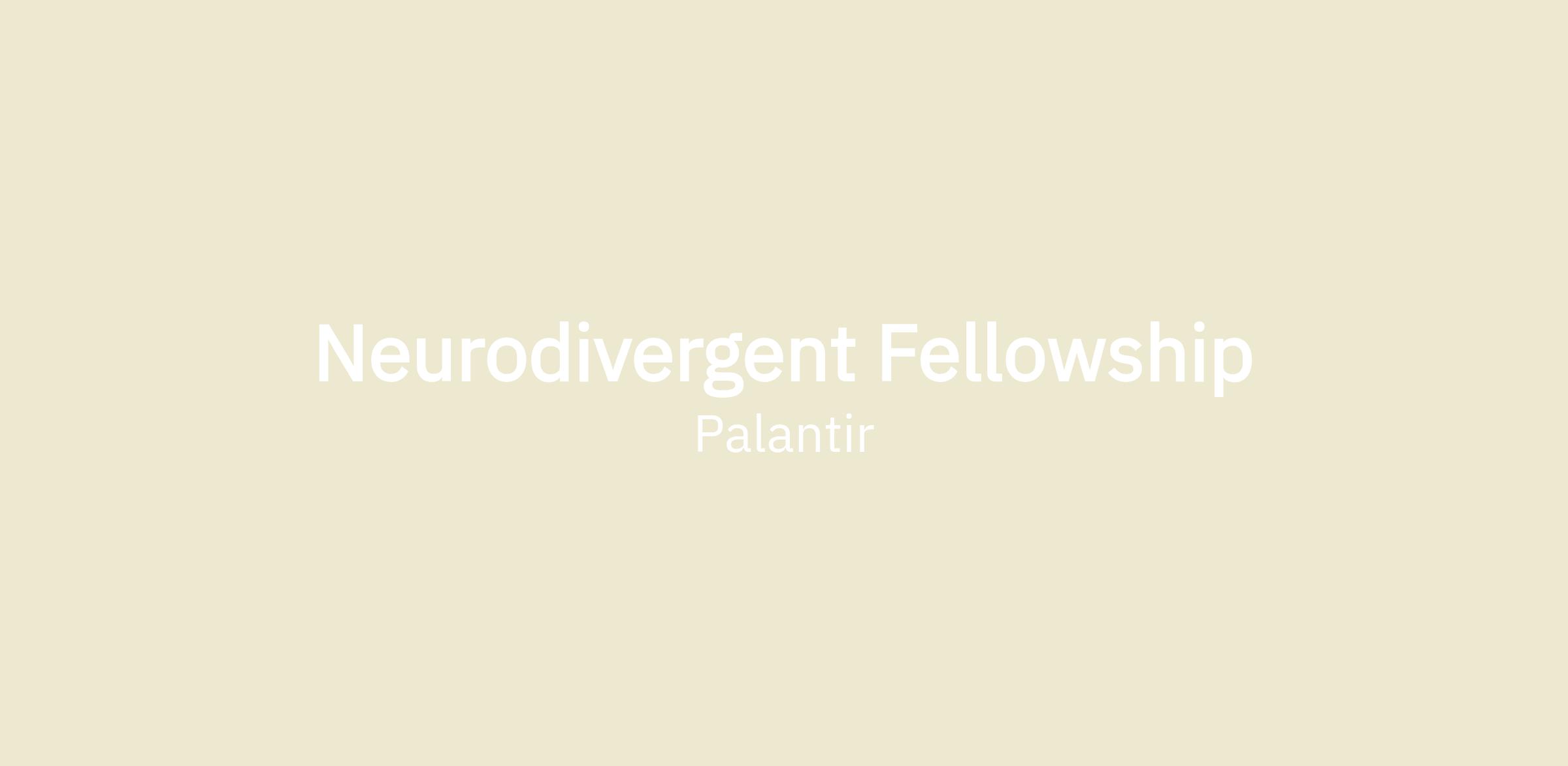 Palantir is launching the Neurodivergent Fellowship as a recruitment pathway for exceptional neurodivergent talent. This is not a diversity initiative. We believe neurodivergent individuals will have a competitive advantage as elite builders of the next technological era, and we're hiring accordingly for all roles.