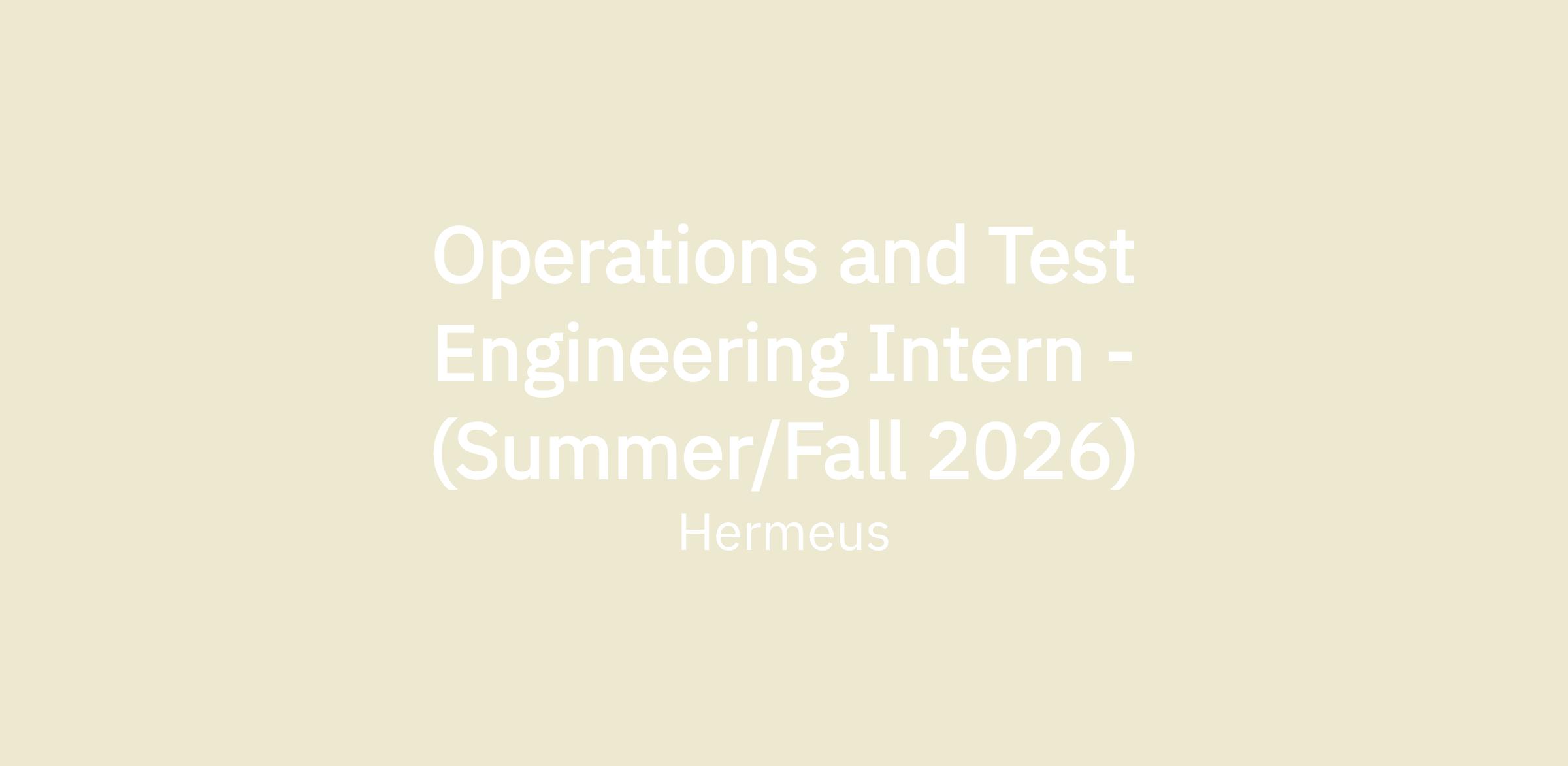 Operations and Test Engineering Intern - (Summer/Fall 2026)