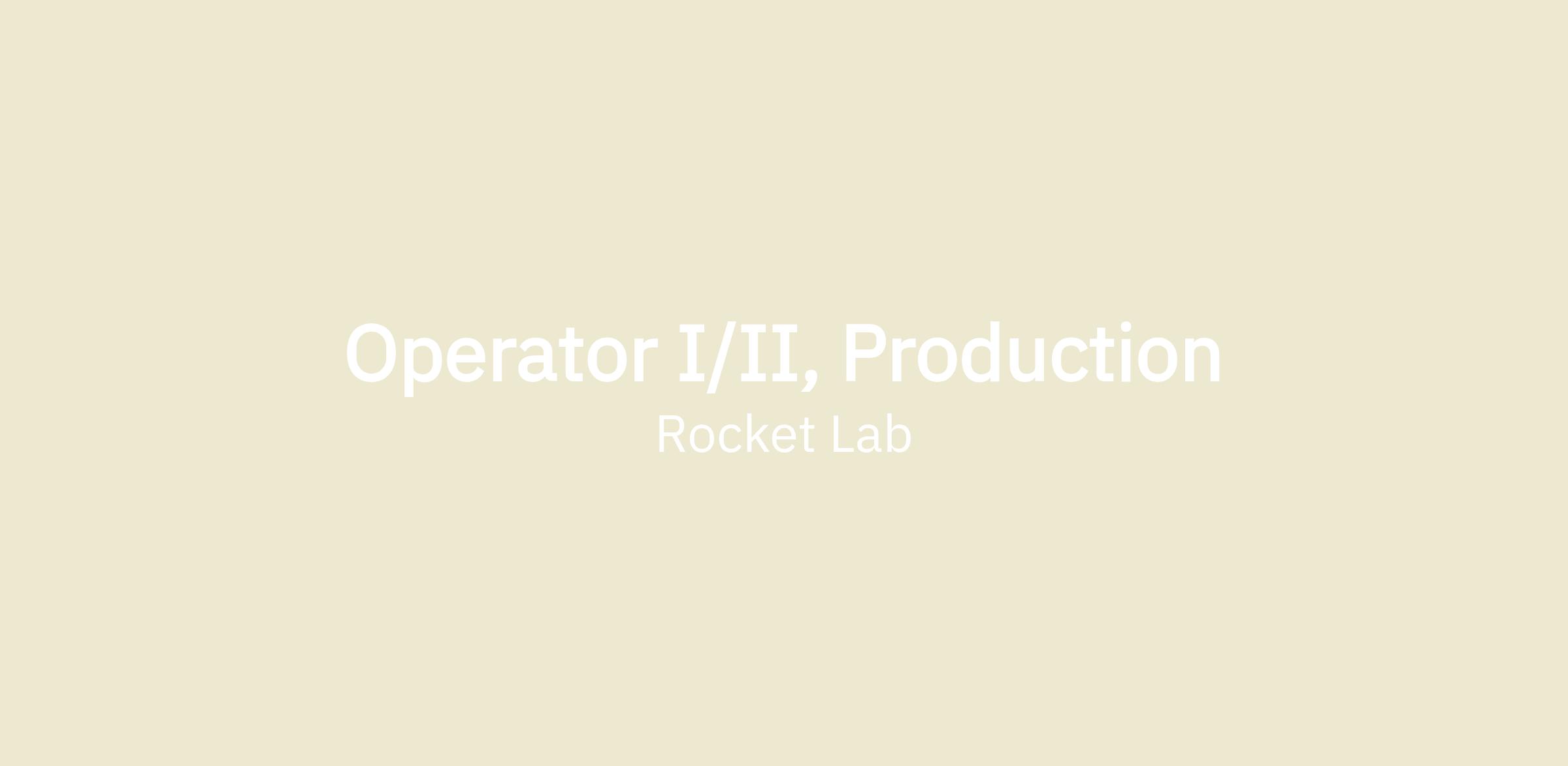 OPERATOR I/II, PRODUCTION